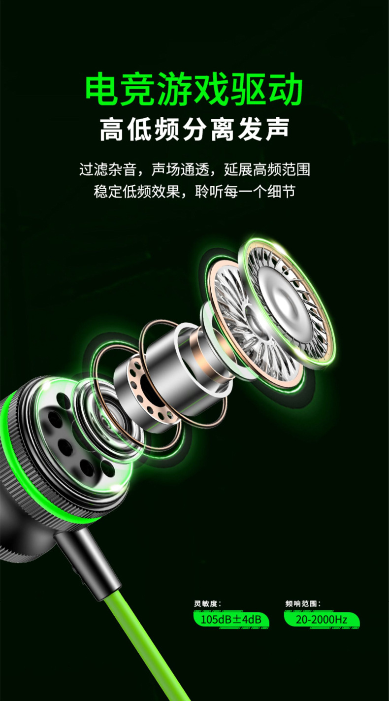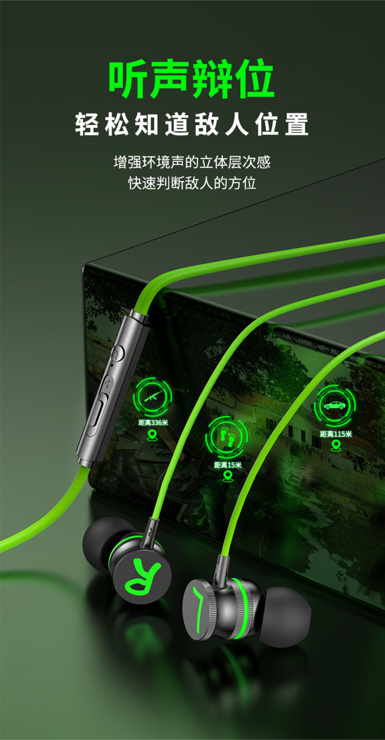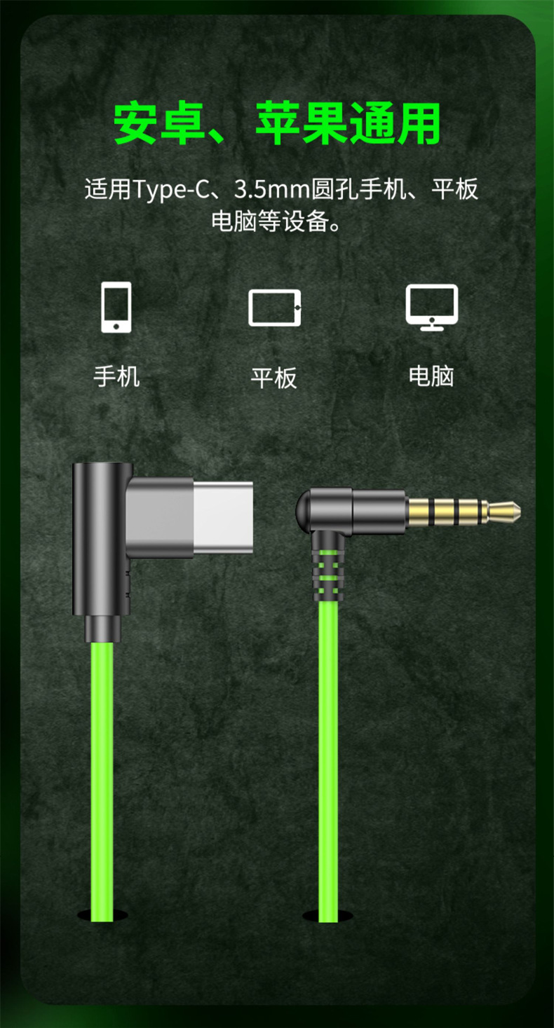 左右声道游戏耳机手机有线入耳式电竞吃鸡听声辩位typec弯头耳机