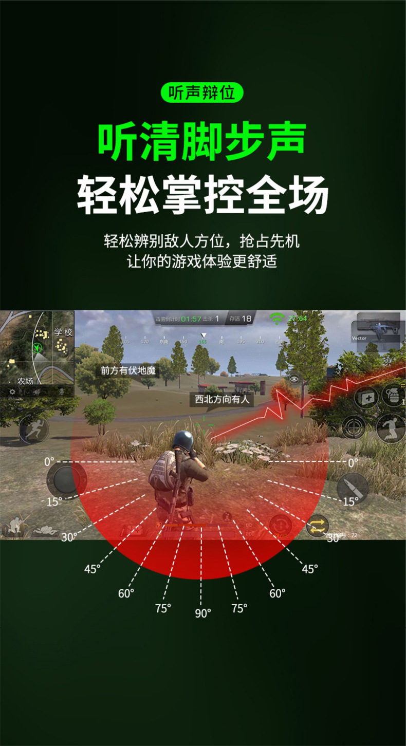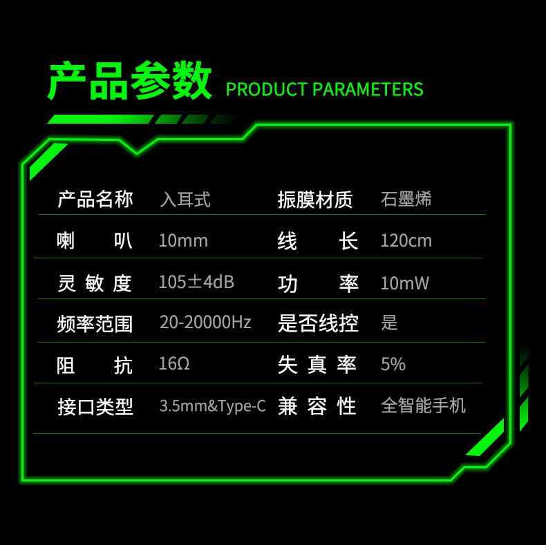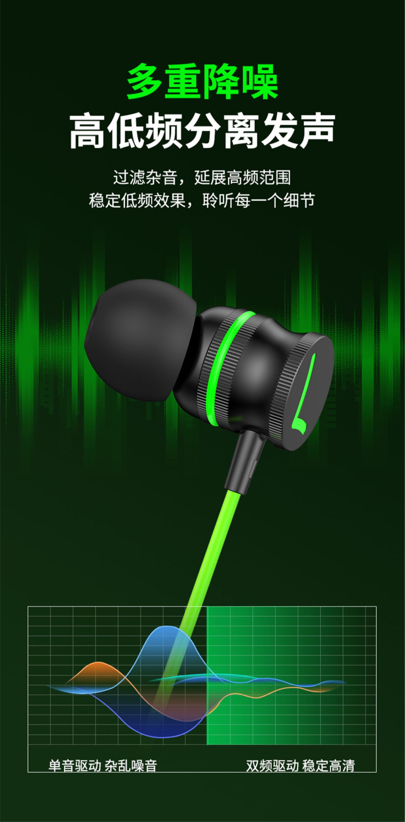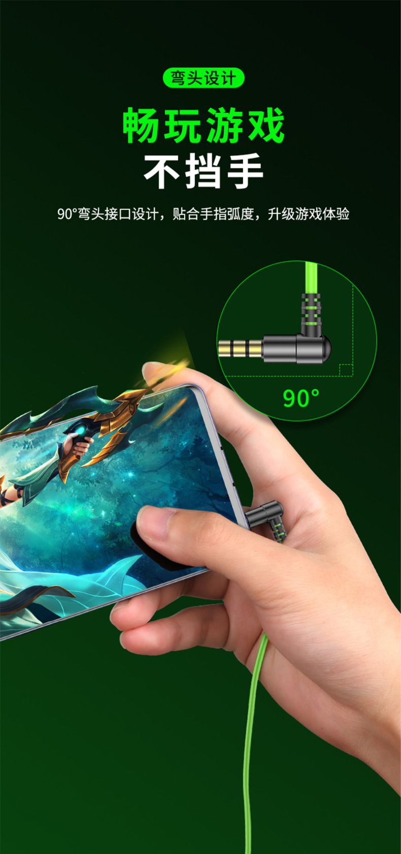 左右声道游戏耳机手机有线入耳式电竞吃鸡听声辩位typec弯头耳机
