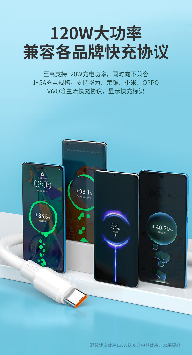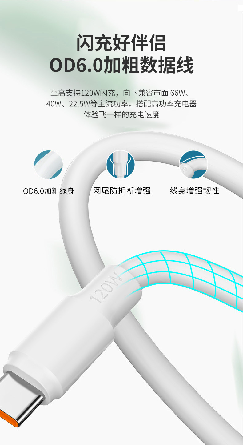 蟒蛇120W神龙线数据线安卓Type-C手机6A加粗超级快充闪充电线批发