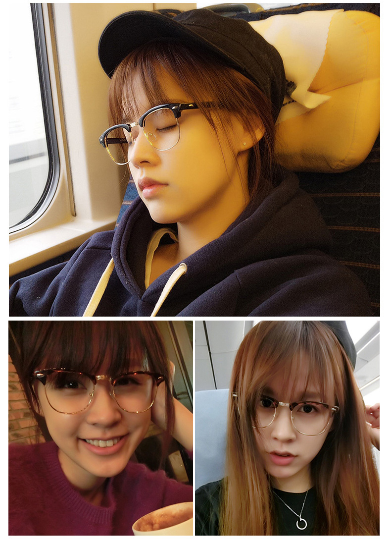 3016平光镜眼镜架半框复古米钉眼镜框架防蓝光紫外线眼镜厂家批发