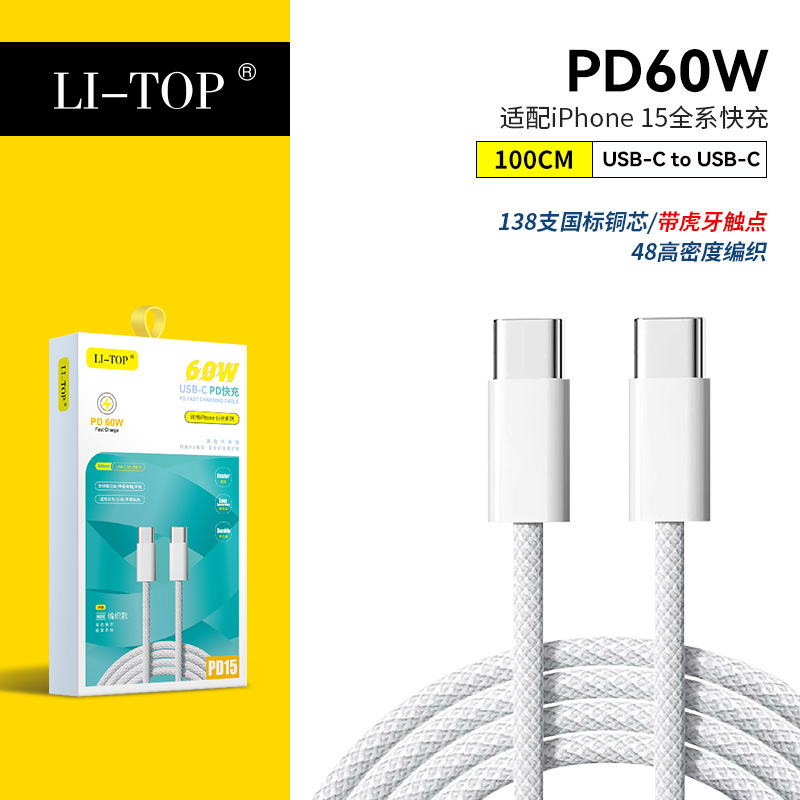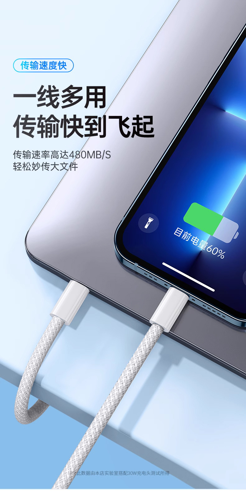 双头typec 60W适用iphone15手机快充macbook ipadpro充电数据线
