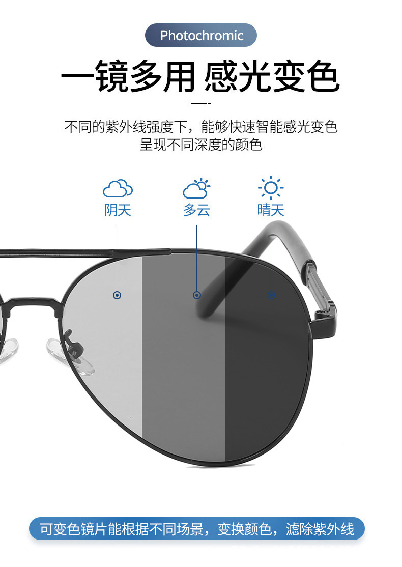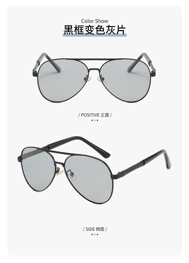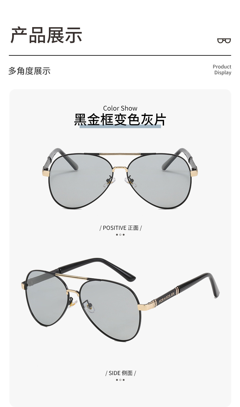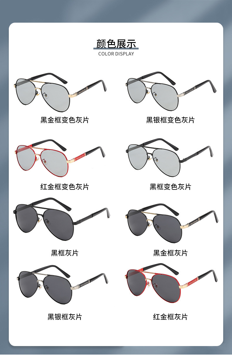 2024夏季偏光太阳镜感光变色男士墨镜金属蛤蟆镜黑框眼镜厂家批发