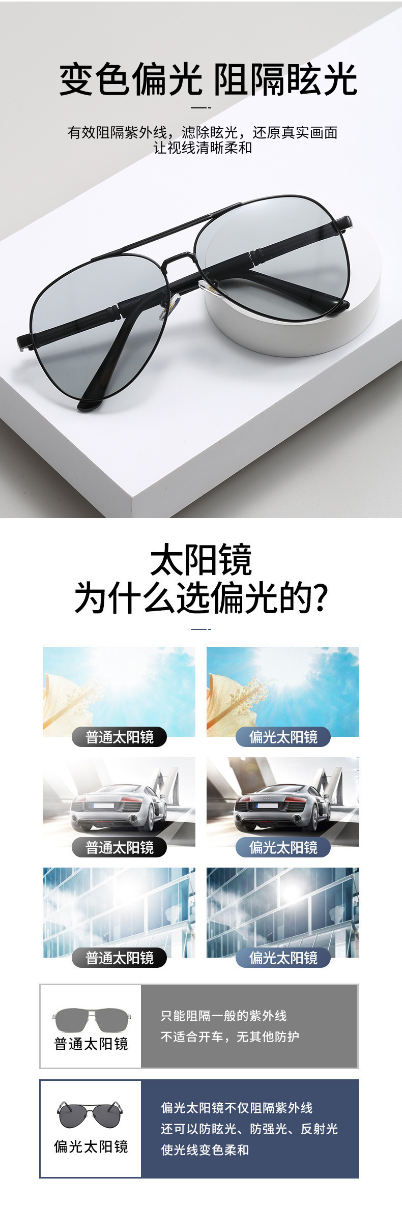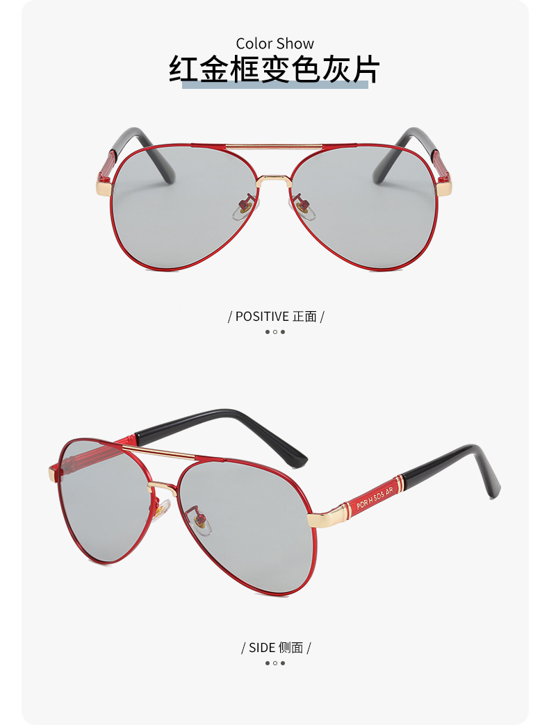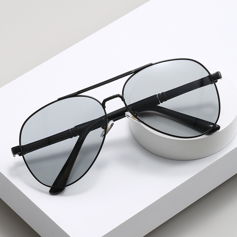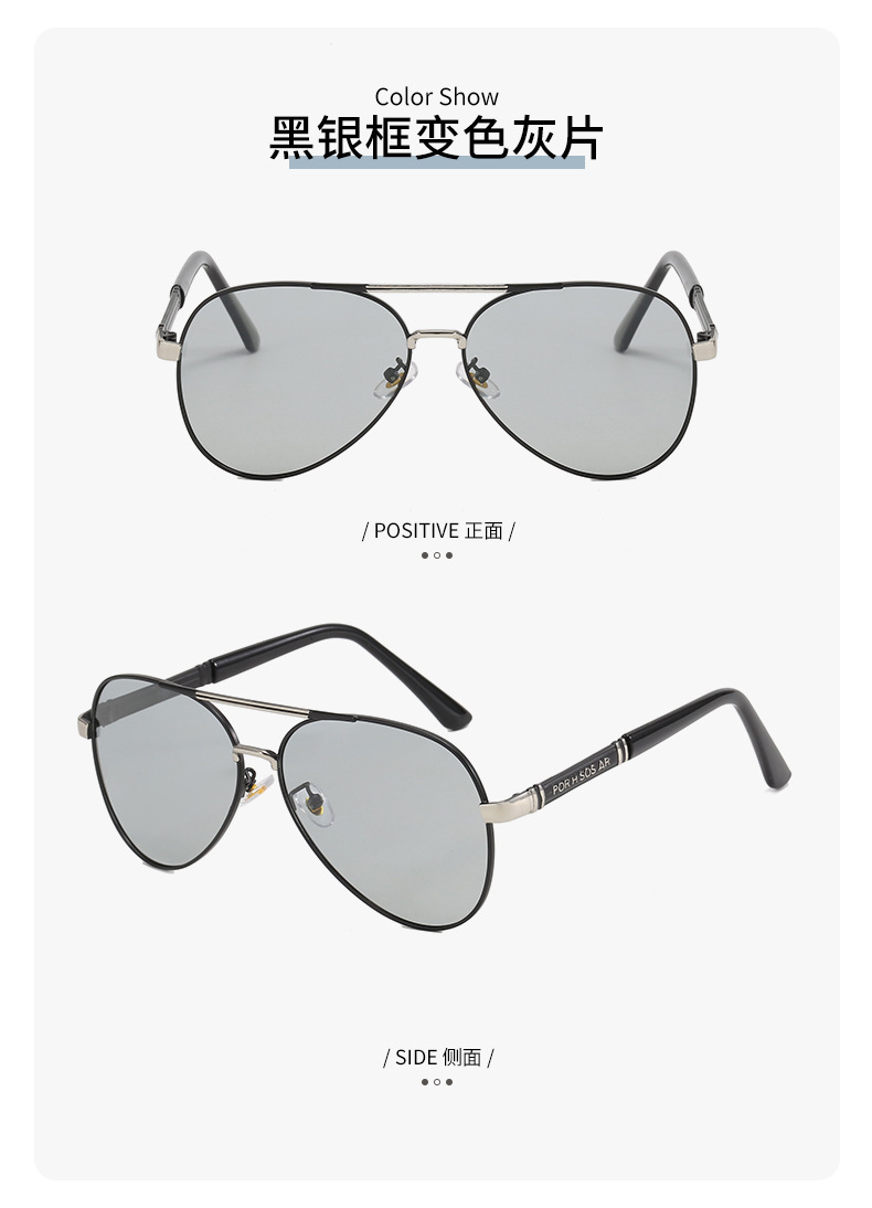2024夏季偏光太阳镜感光变色男士墨镜金属蛤蟆镜黑框眼镜厂家批发