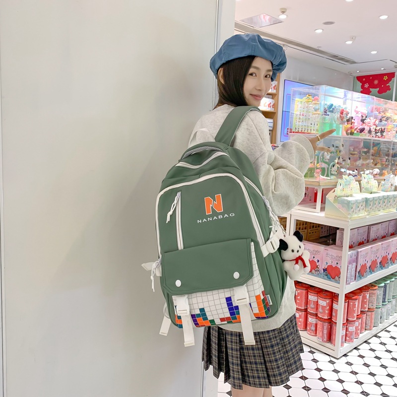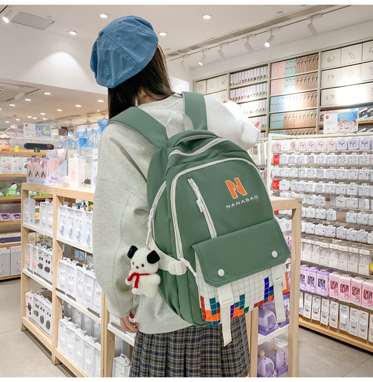 时尚少女背包新款尼龙纯色双肩包中学生书包批发