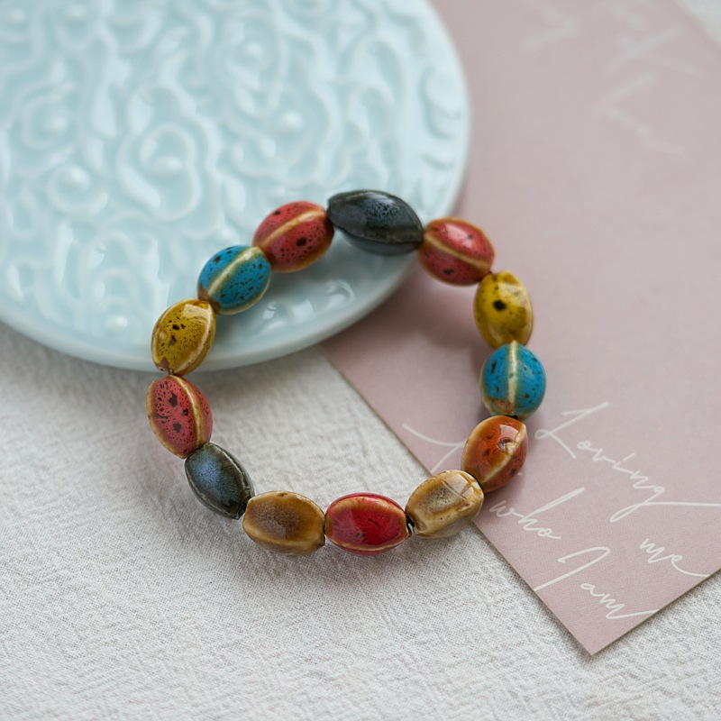 原创设计景德镇陶瓷小饰品花釉珠子手链特色手串学生女简约批发