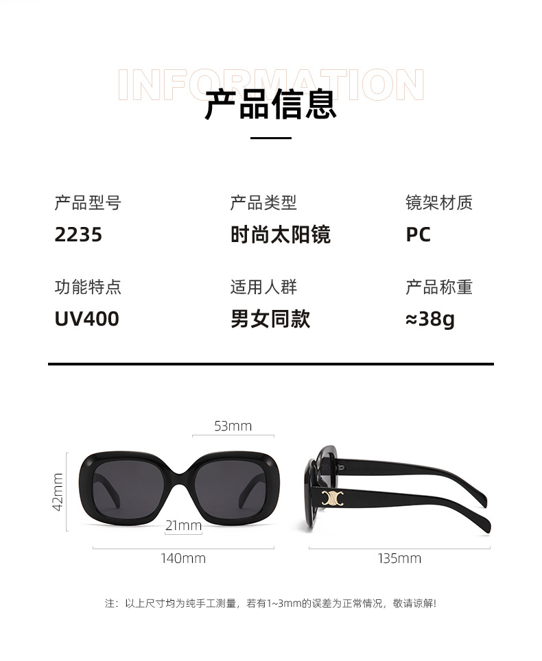 时尚新款高级感网红太阳眼镜女潮防紫外线凯旋门大脸显瘦时尚墨镜