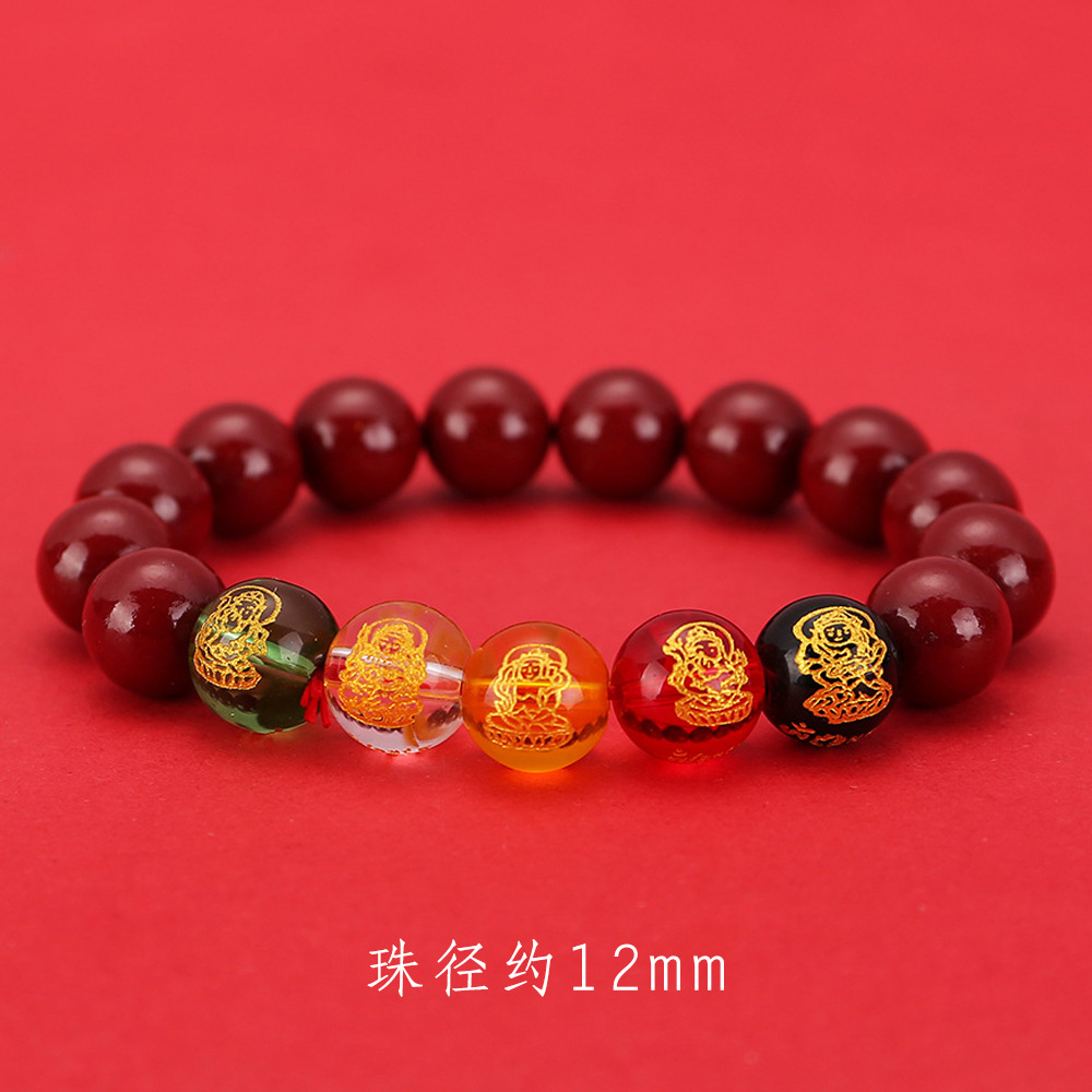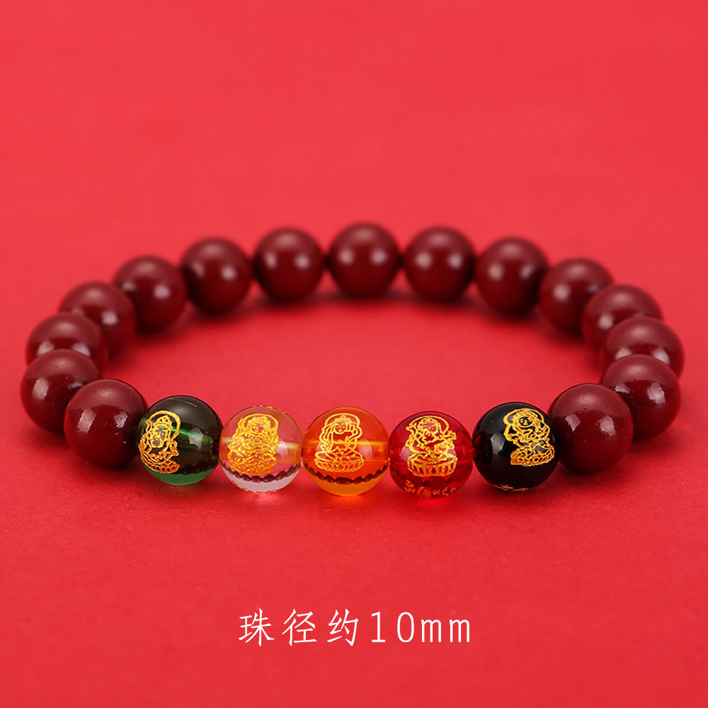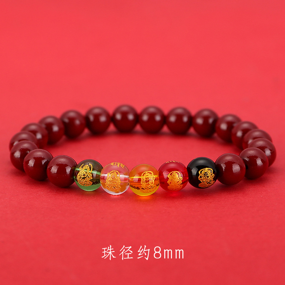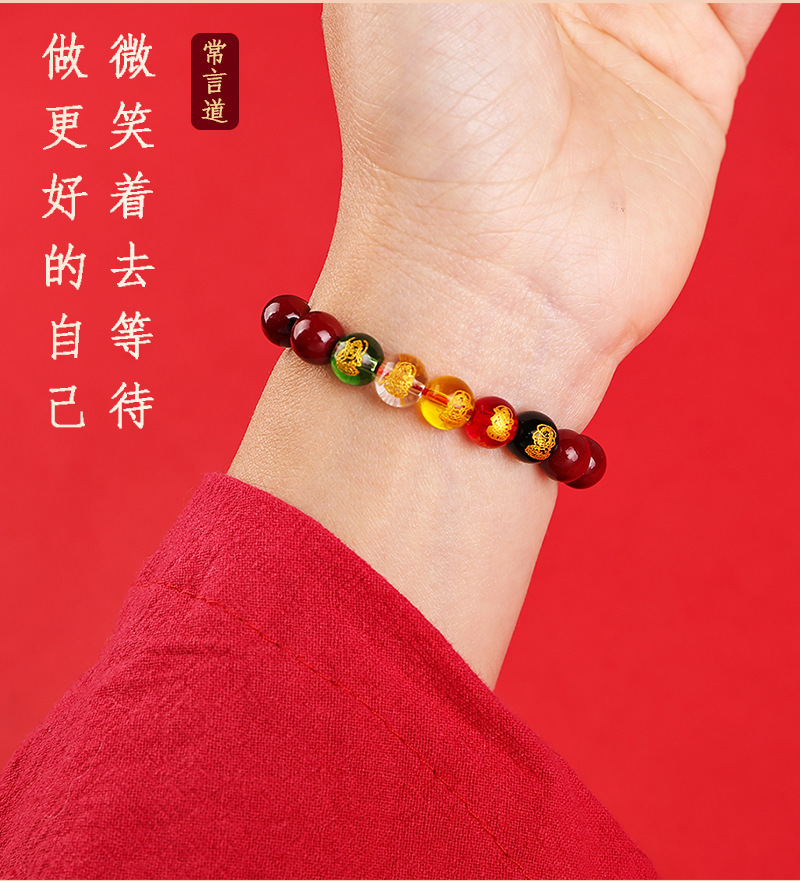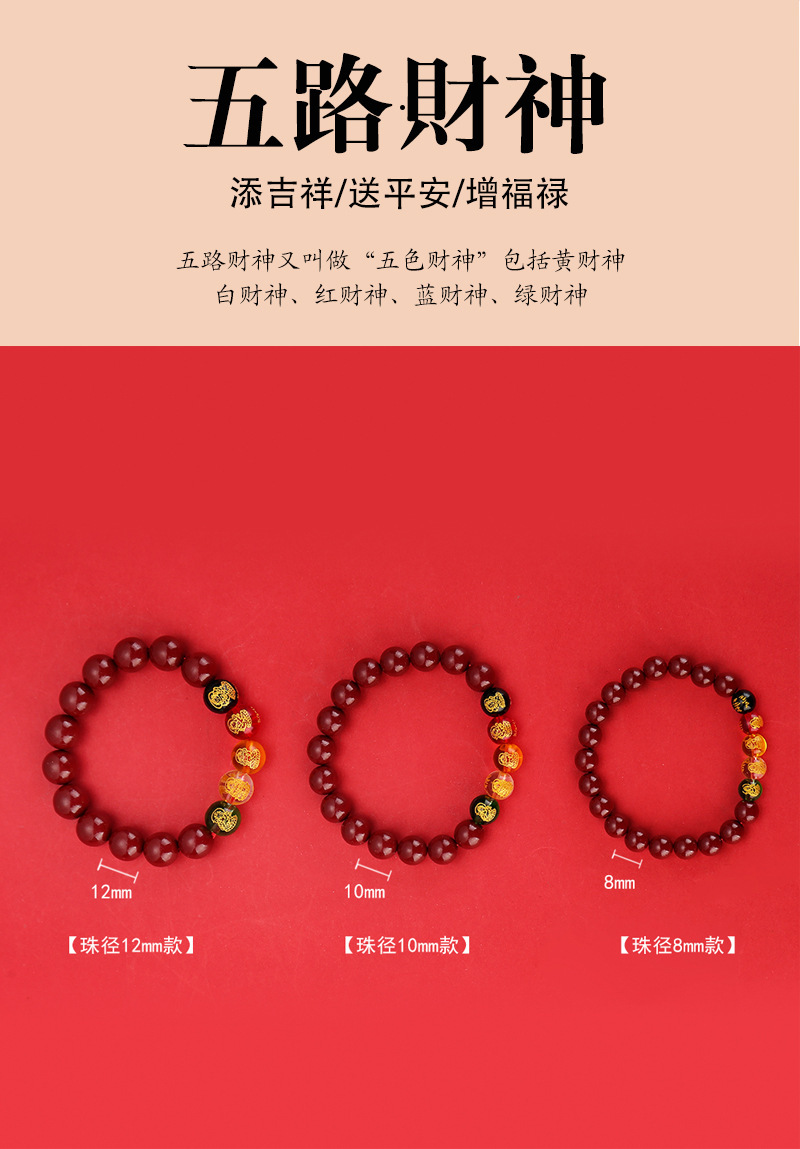 2024龙年8mm五路财神朱砂手链男女款紫金砂五色水晶手串批发代发
