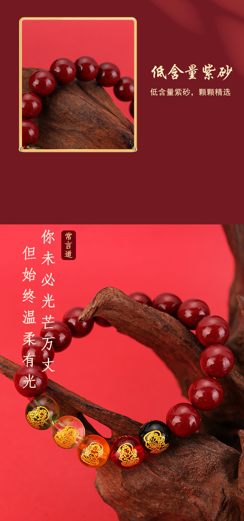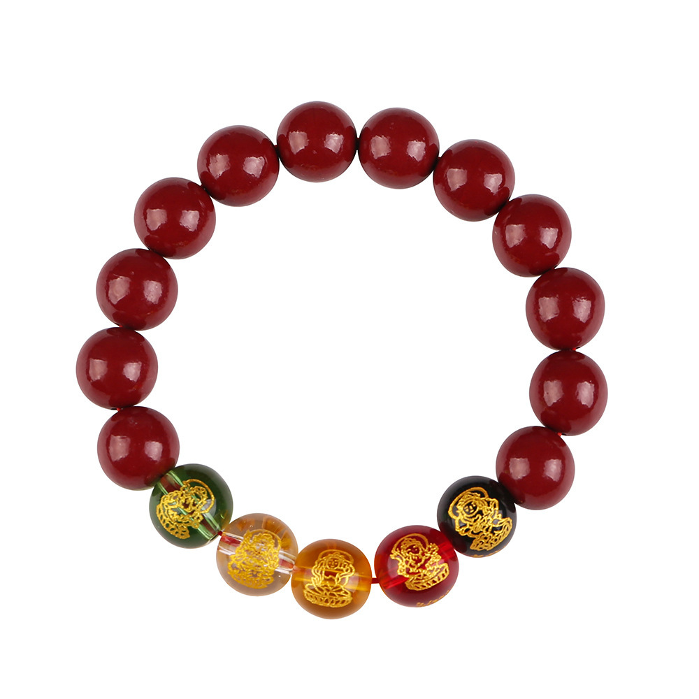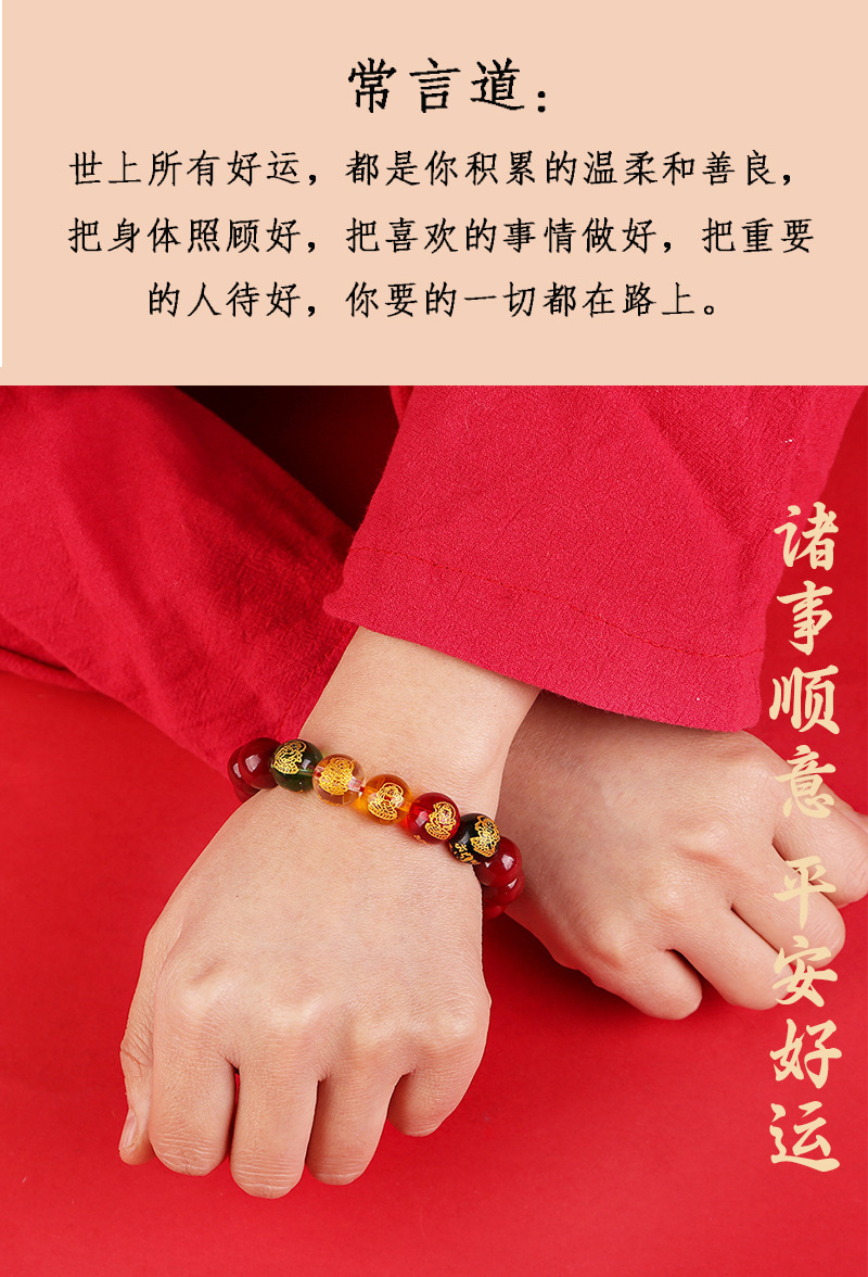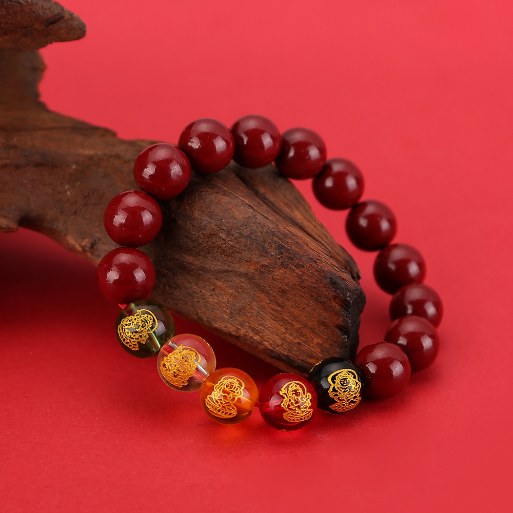 2024龙年8mm五路财神朱砂手链男女款紫金砂五色水晶手串批发代发