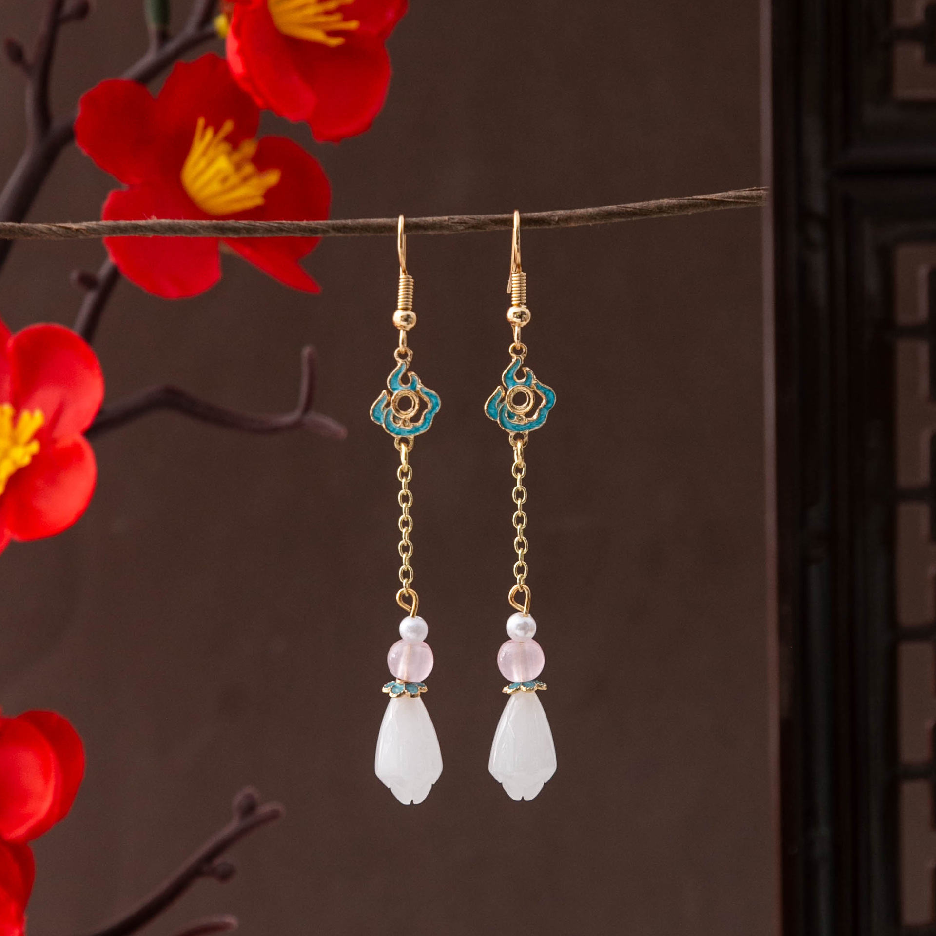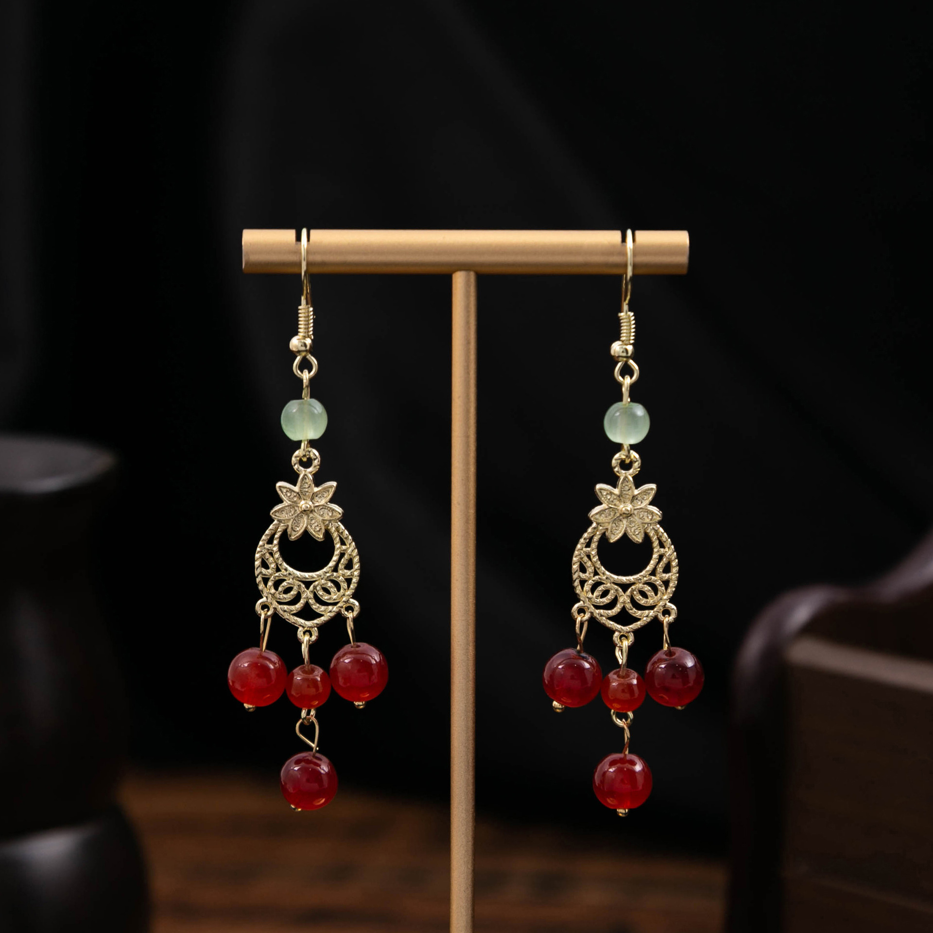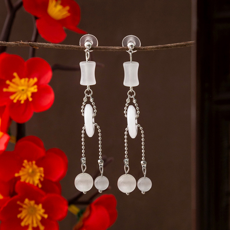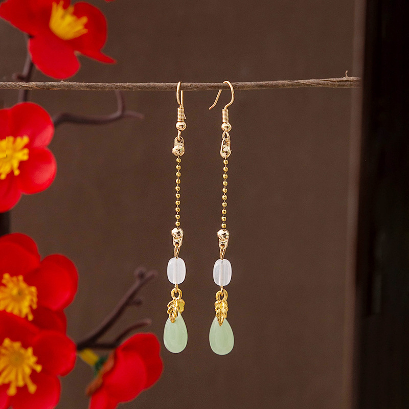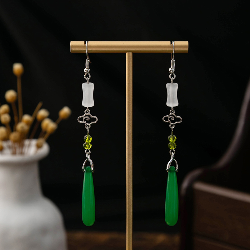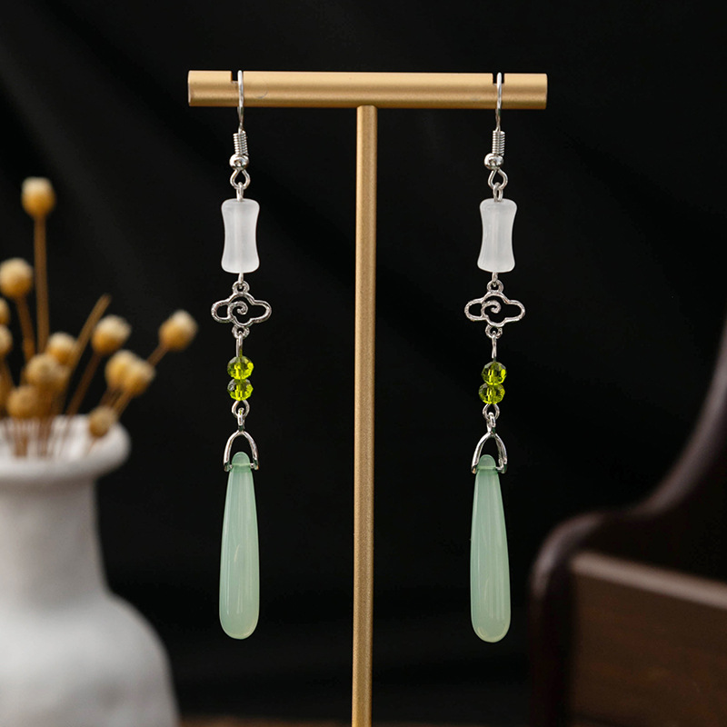 新中式古风串珠长款流苏耳环 国风镂空花朵竹节耳饰旗袍配饰耳坠