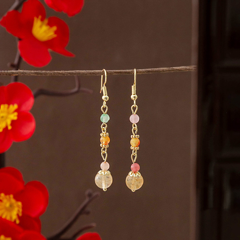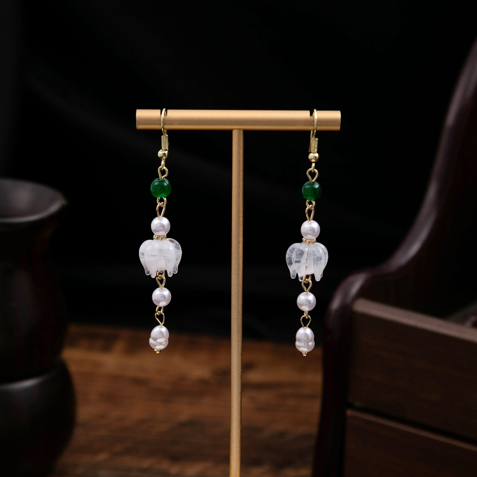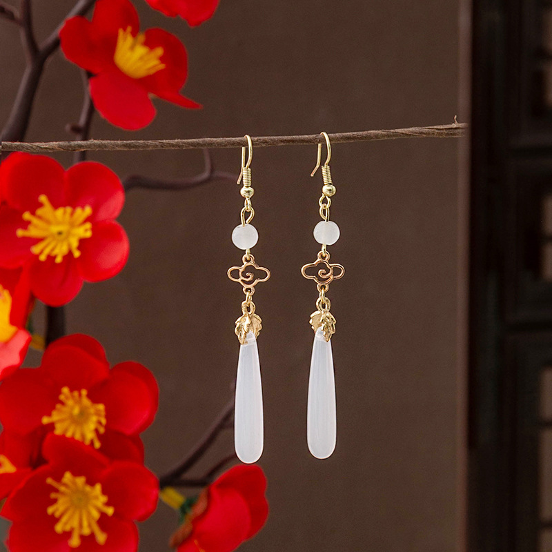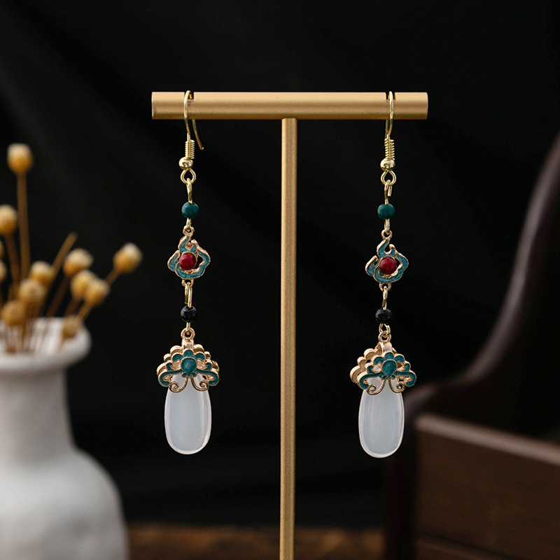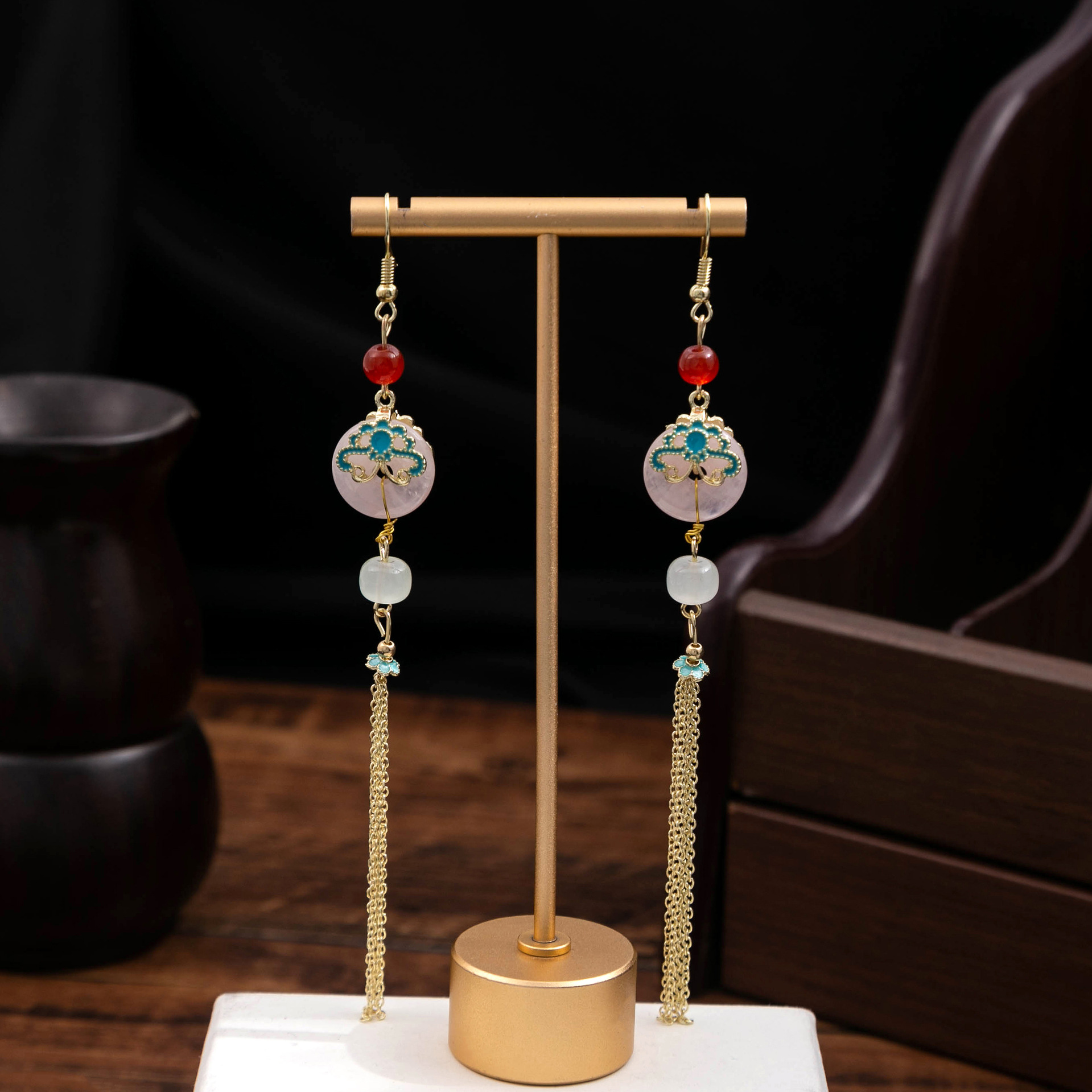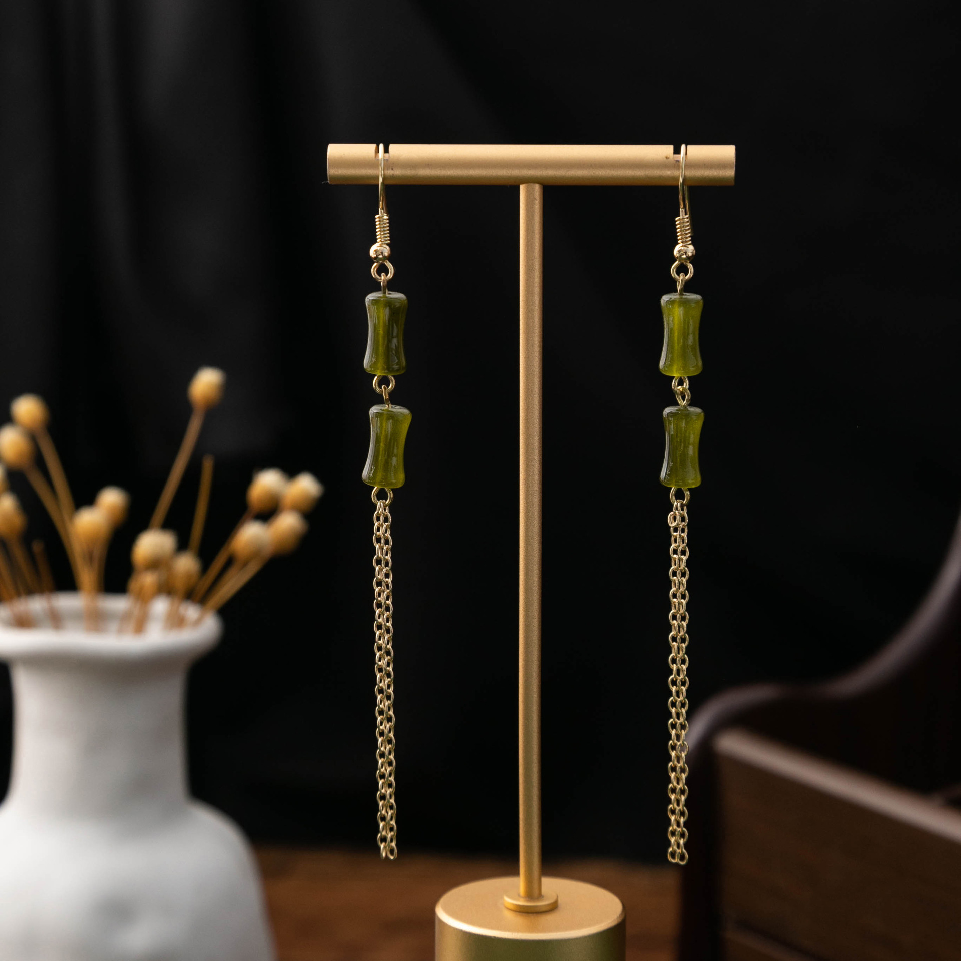 新中式古风串珠长款流苏耳环 国风镂空花朵竹节耳饰旗袍配饰耳坠