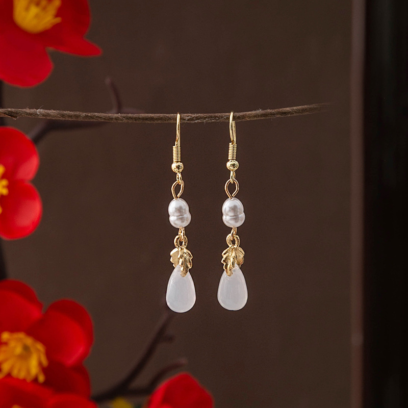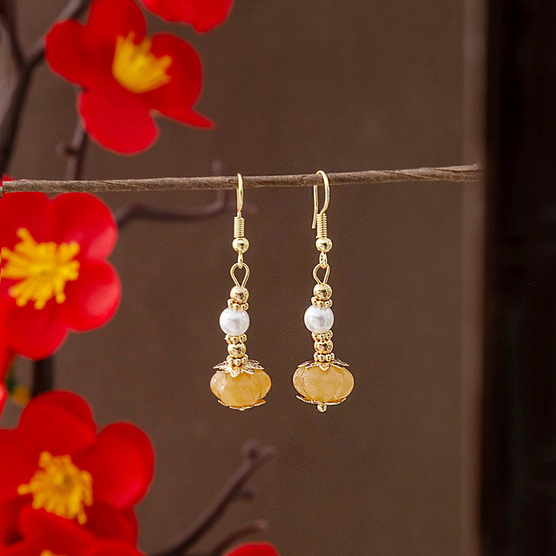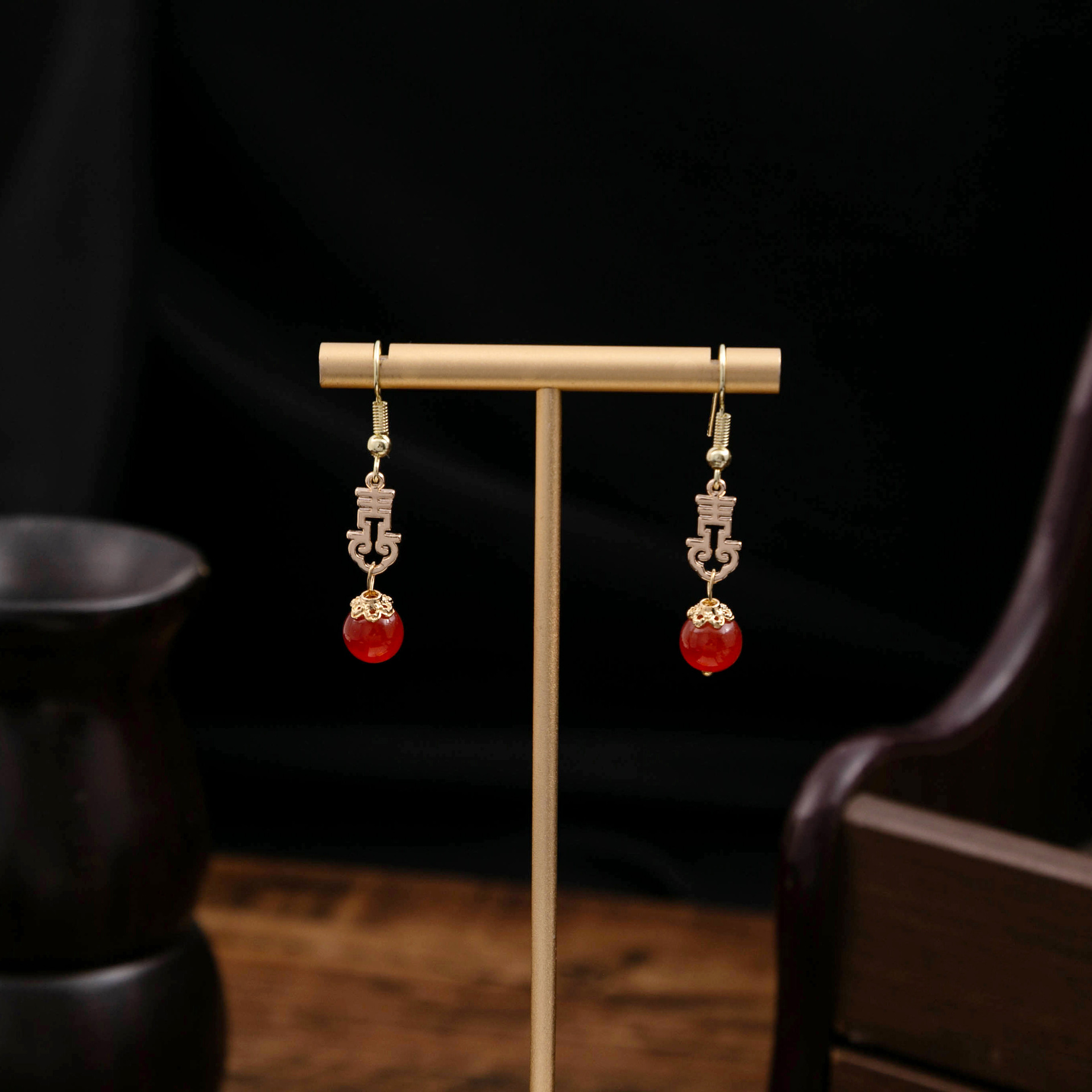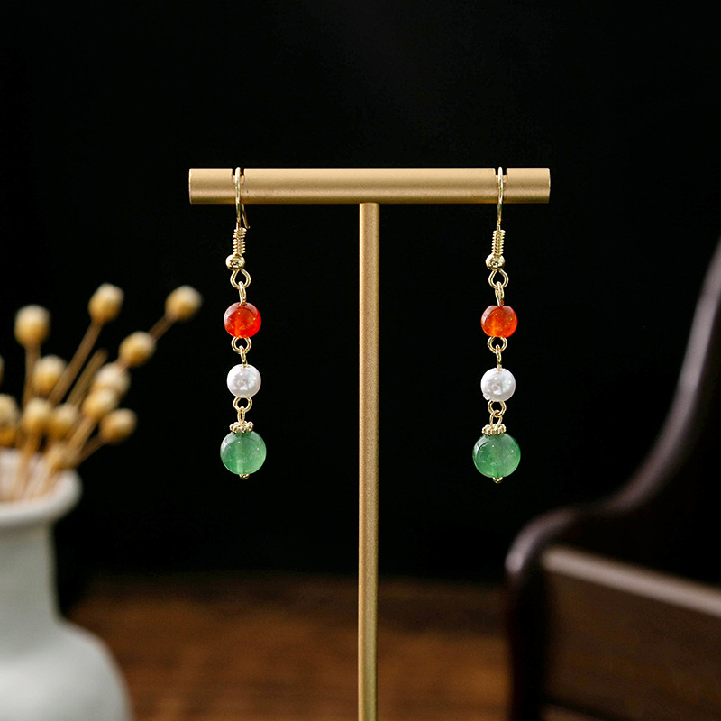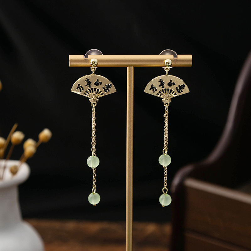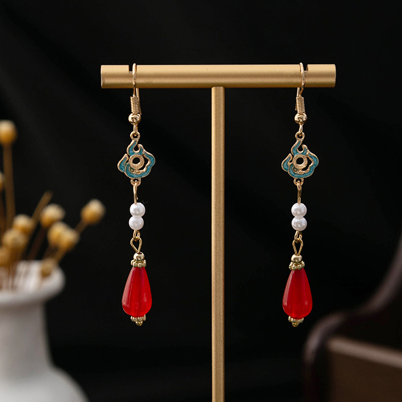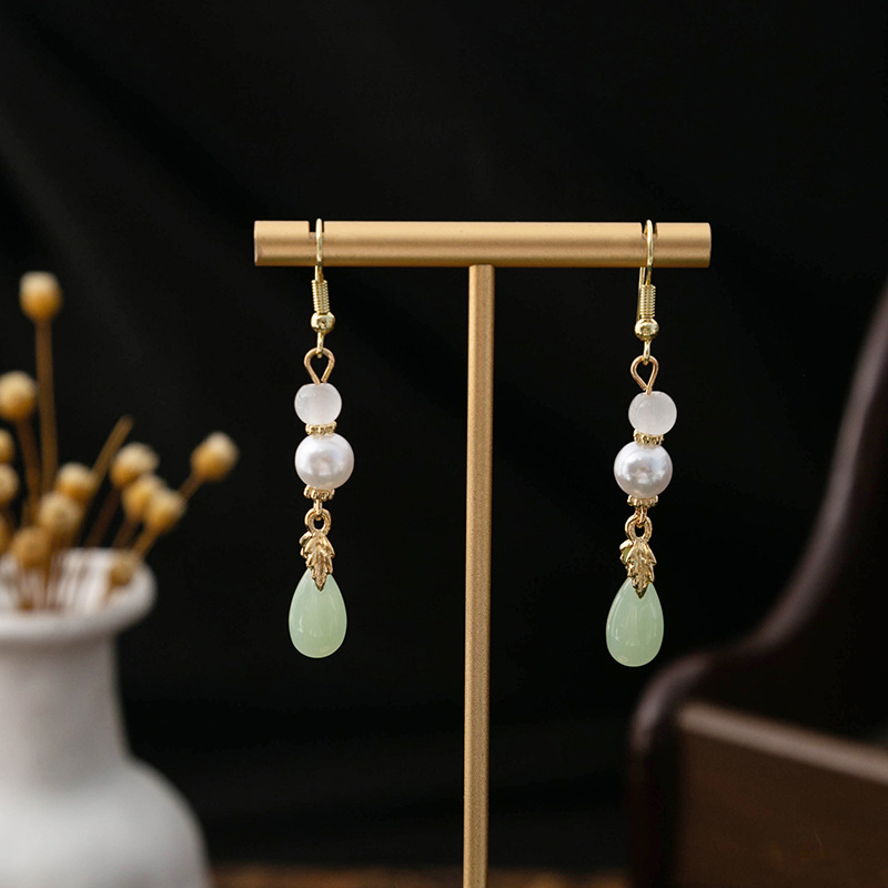 新中式古风串珠长款流苏耳环 国风镂空花朵竹节耳饰旗袍配饰耳坠