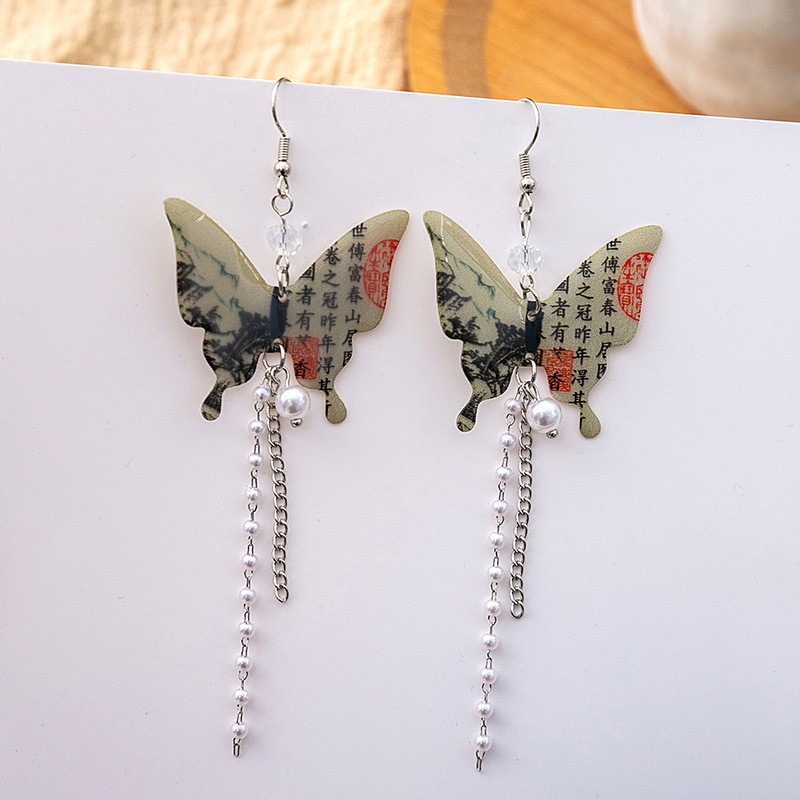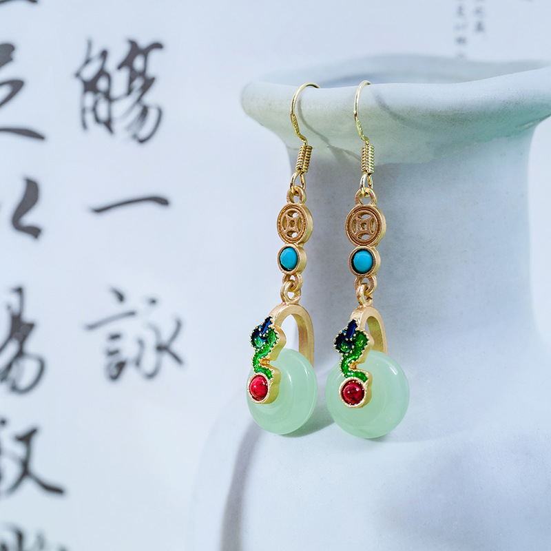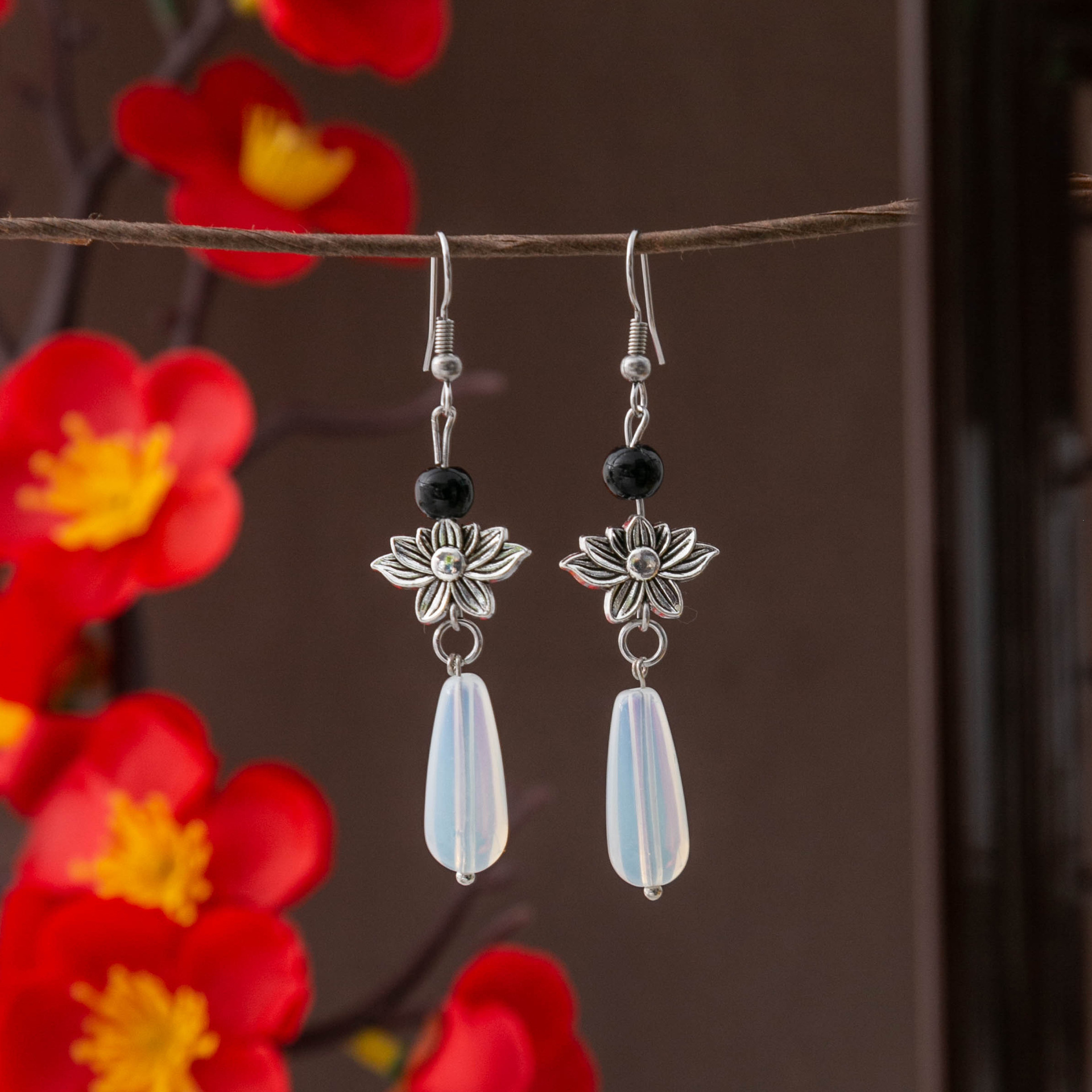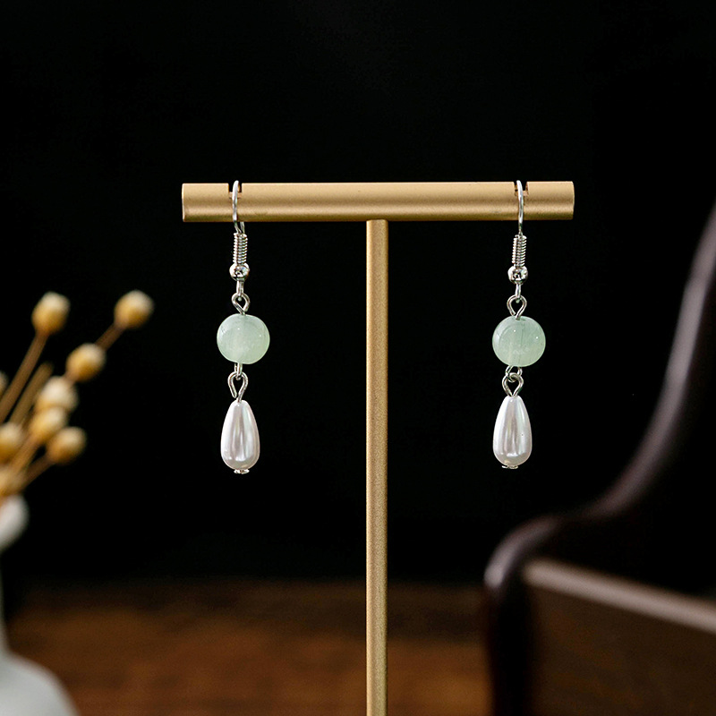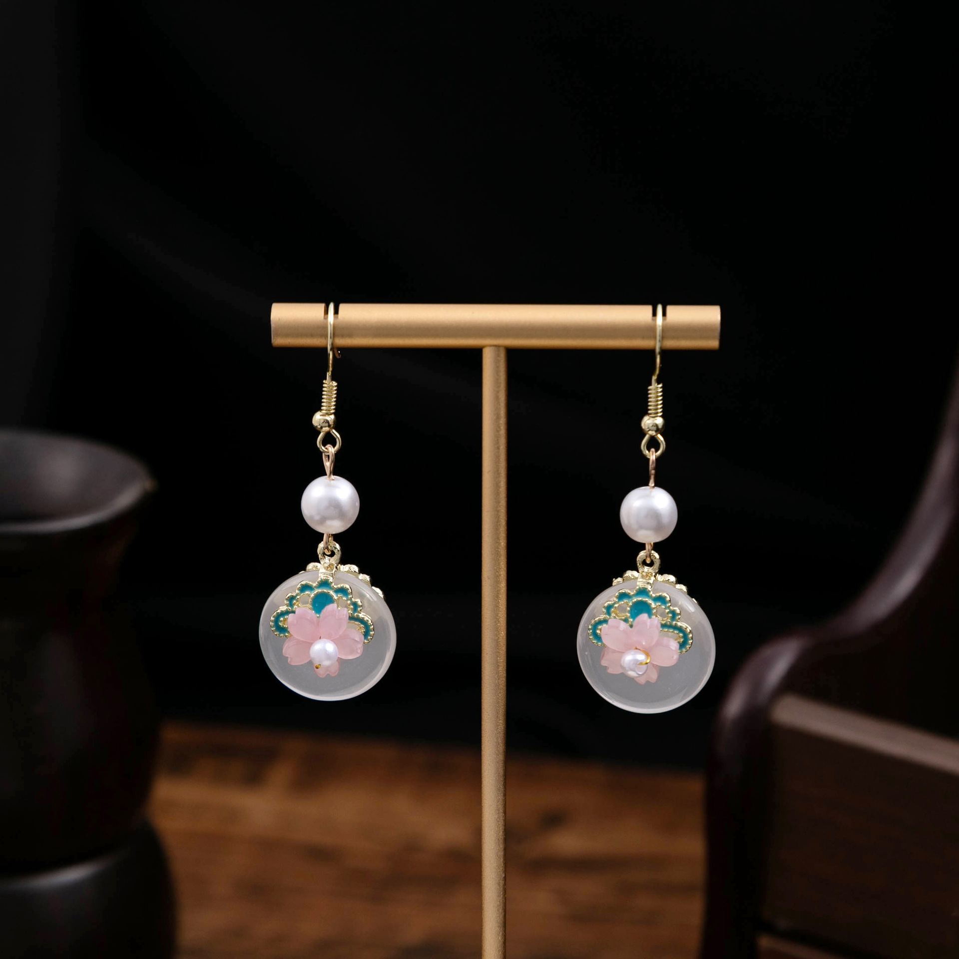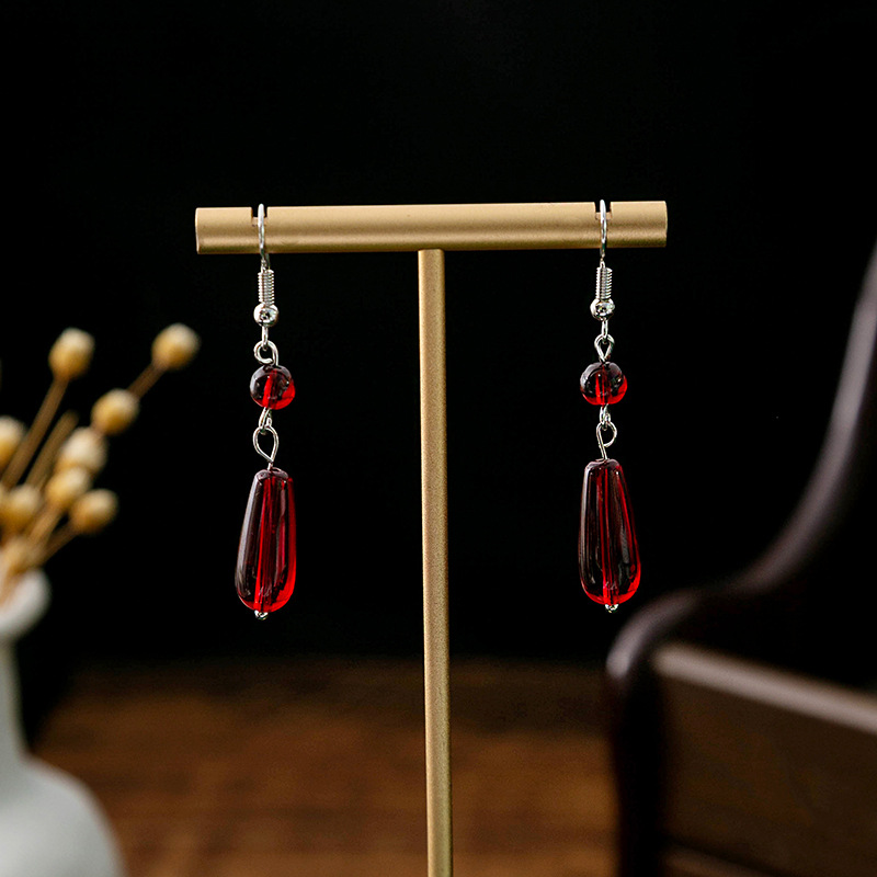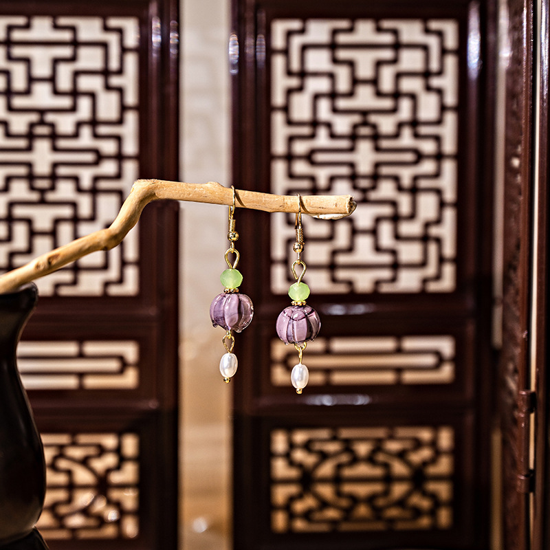 新中式古风串珠长款流苏耳环 国风镂空花朵竹节耳饰旗袍配饰耳坠