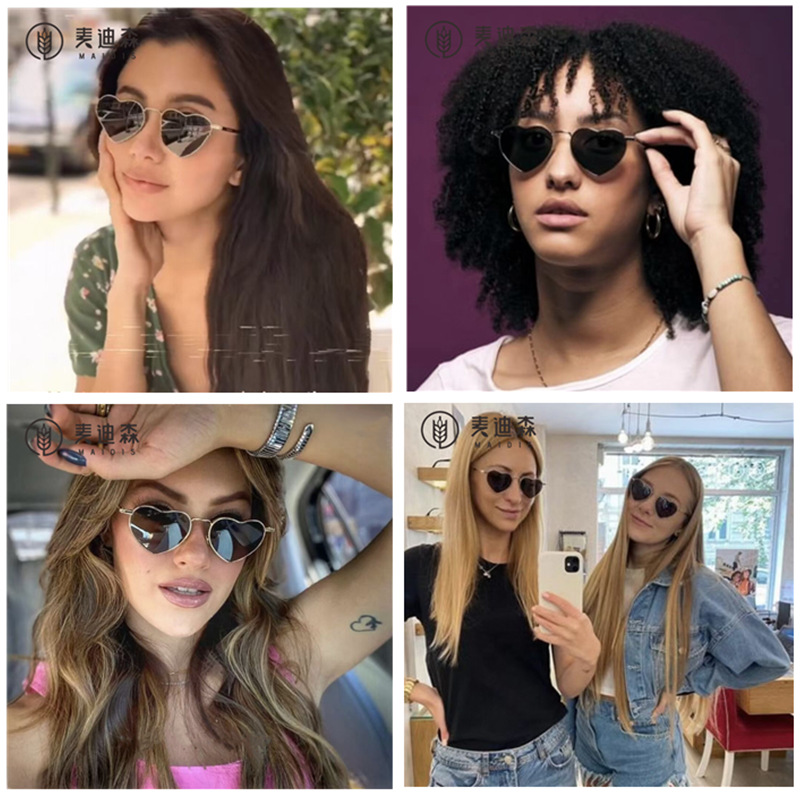 杰特8088金属复古爱心墨镜可爱桃心闺蜜多色眼镜弹簧腿偏光太阳镜