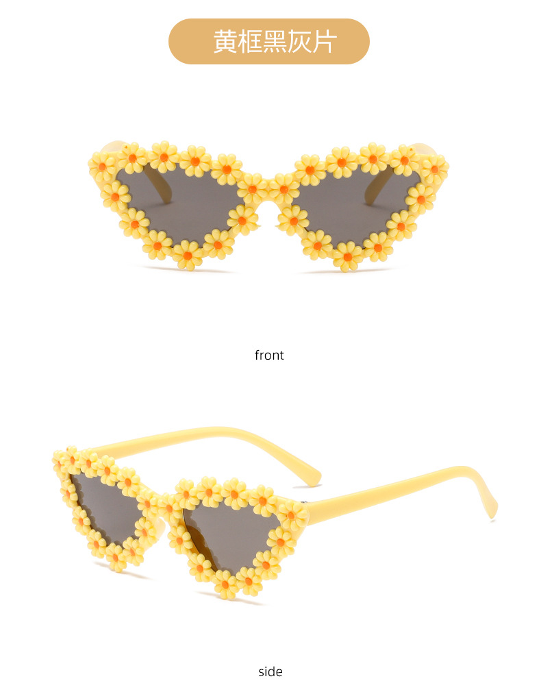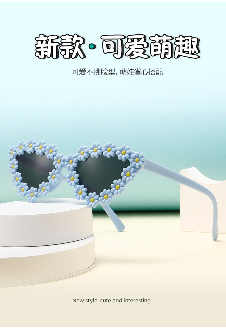 儿童亲子欧美太阳镜女童小雏菊猫眼沙滩防晒拍照墨镜宝宝造型眼镜
