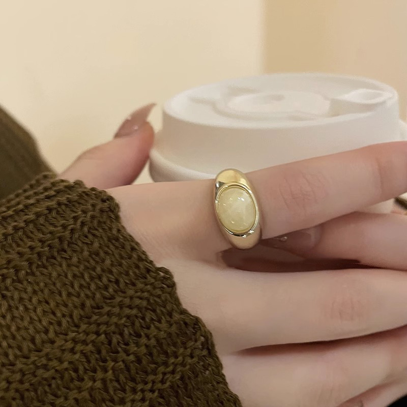美拉德风复古琥珀色天然石开口戒指女气质百搭小众设计高级感新品