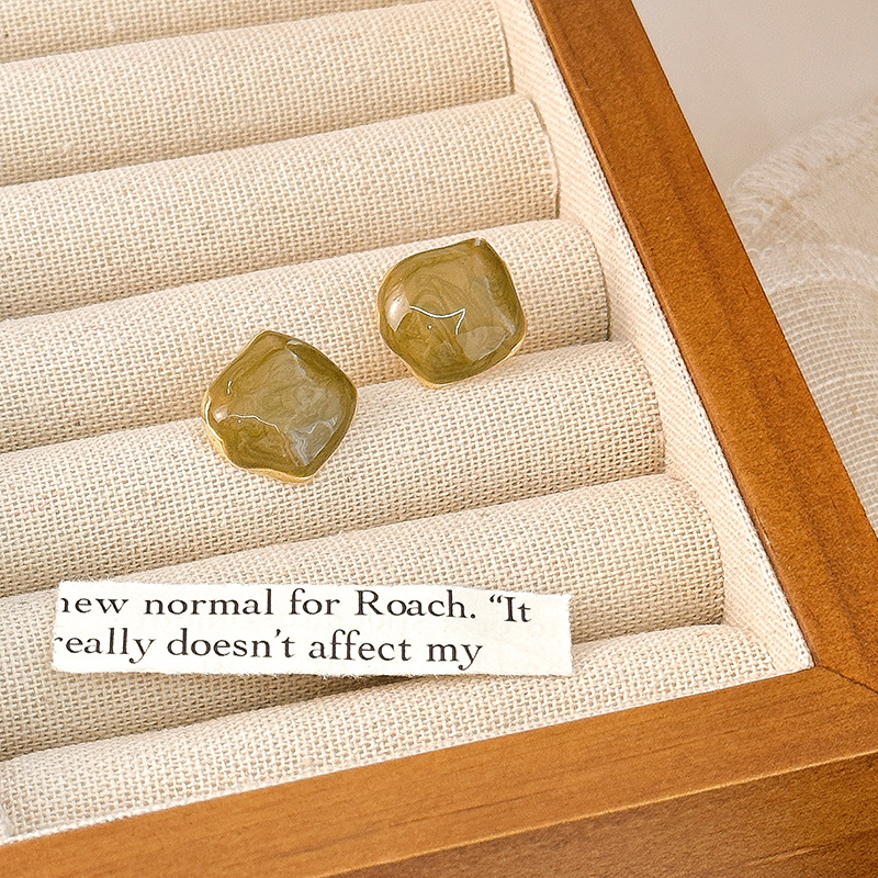小清新绿色系耳夹女无耳洞小众设计感耳环高级感茶系早春耳饰批发