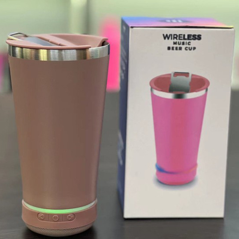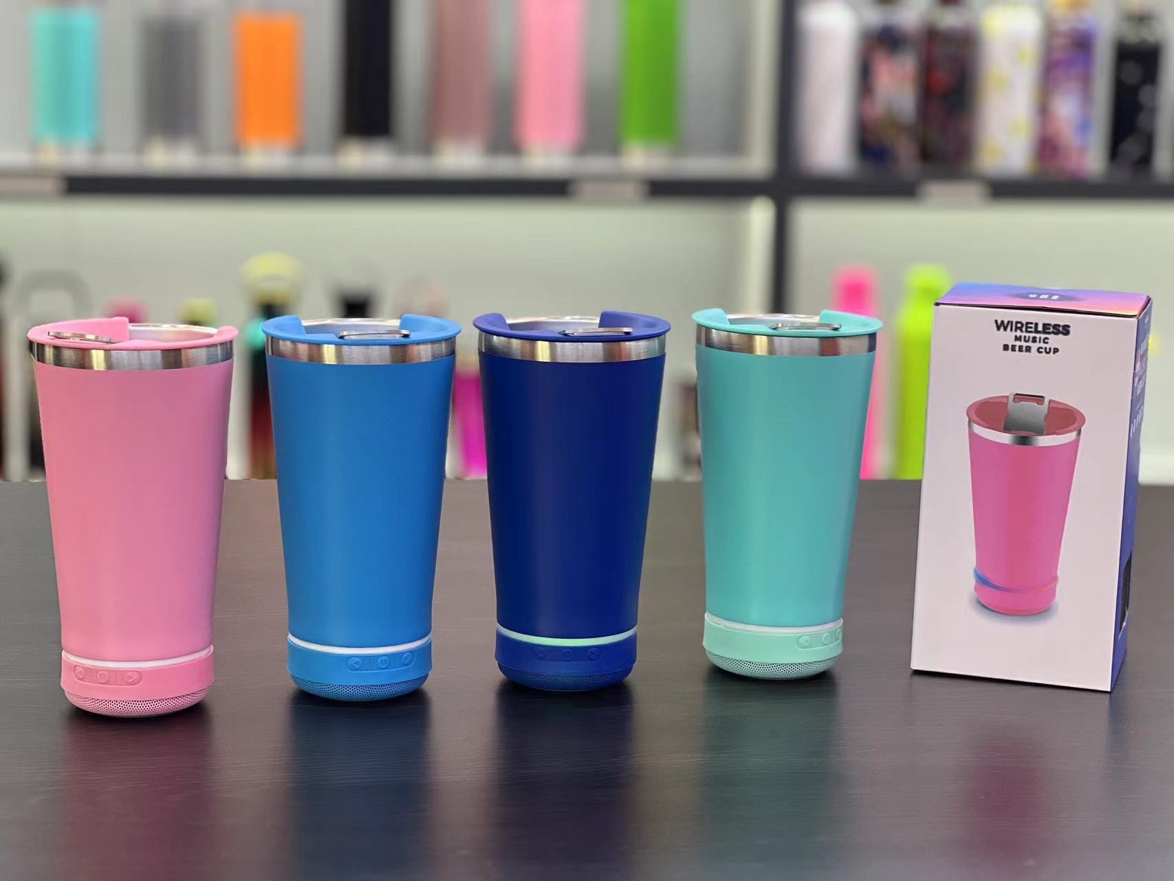 跨境16oz蓝牙音响啤酒杯304不锈钢保温杯便携户外车载汽车杯批发