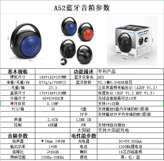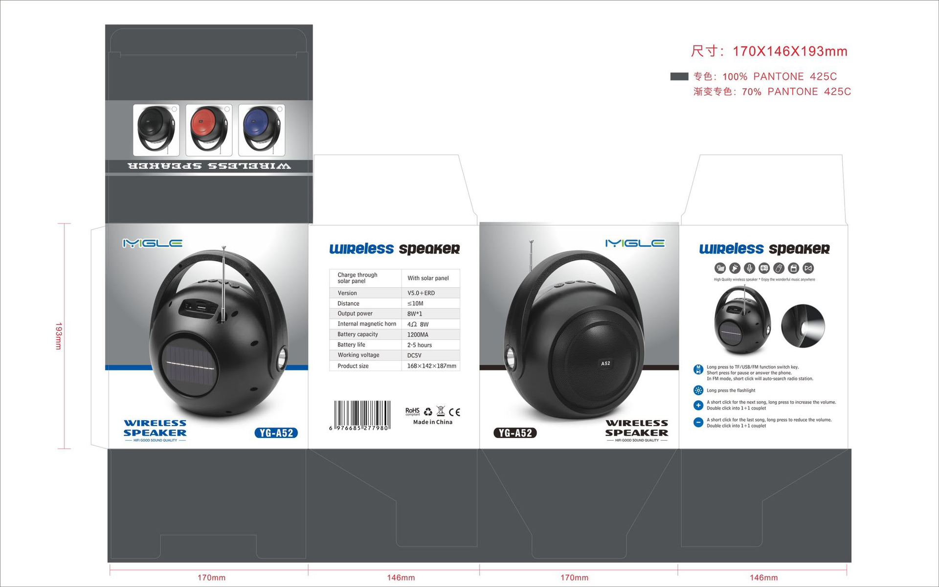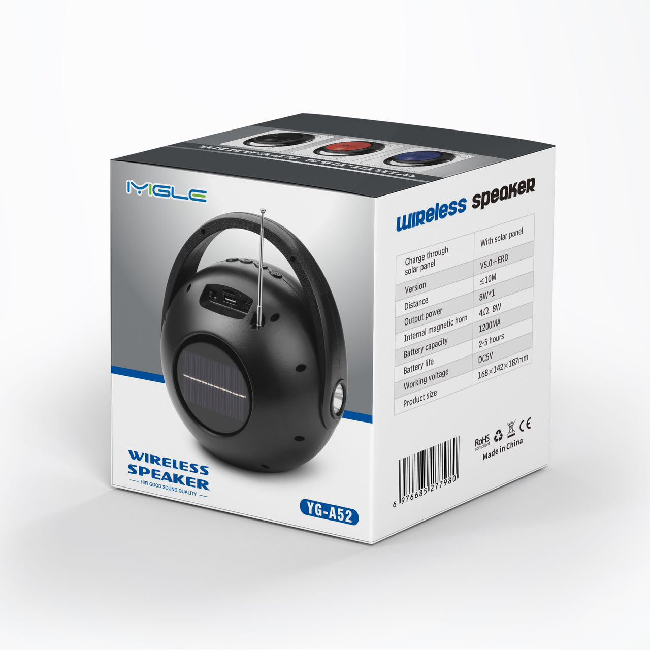 YG-A52新款热卖无线蓝牙音响太阳板充电提手手电筒收音机蓝牙音箱