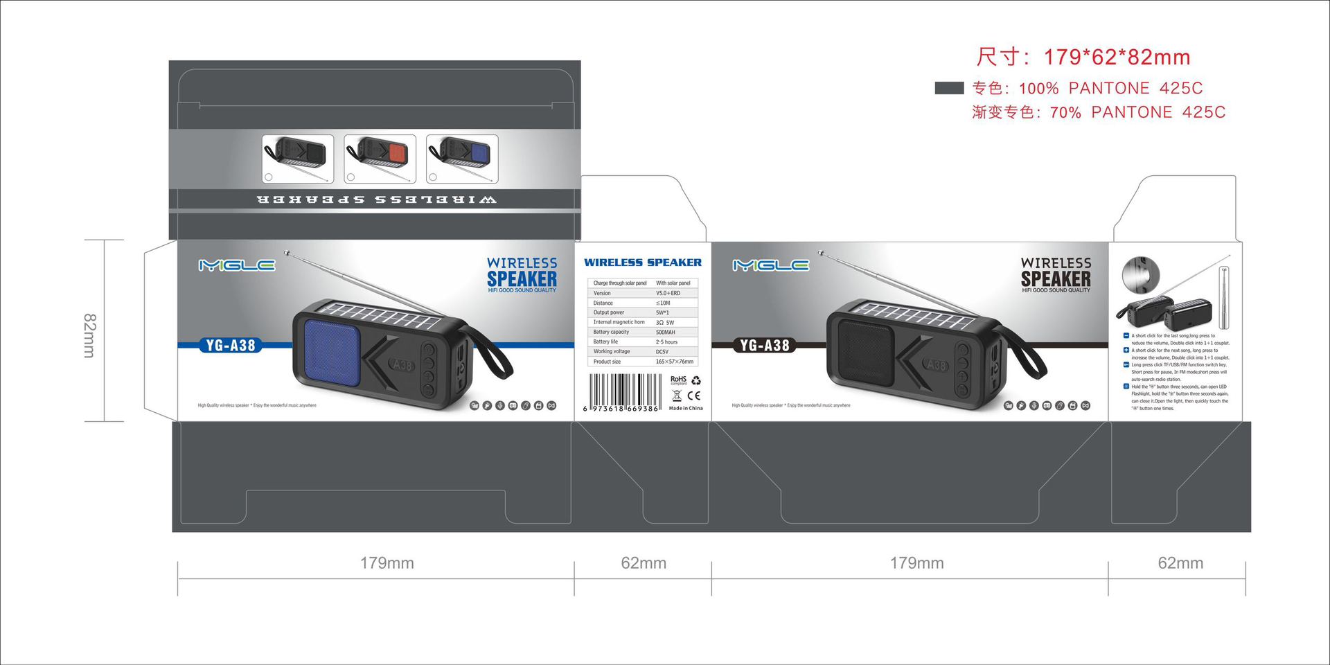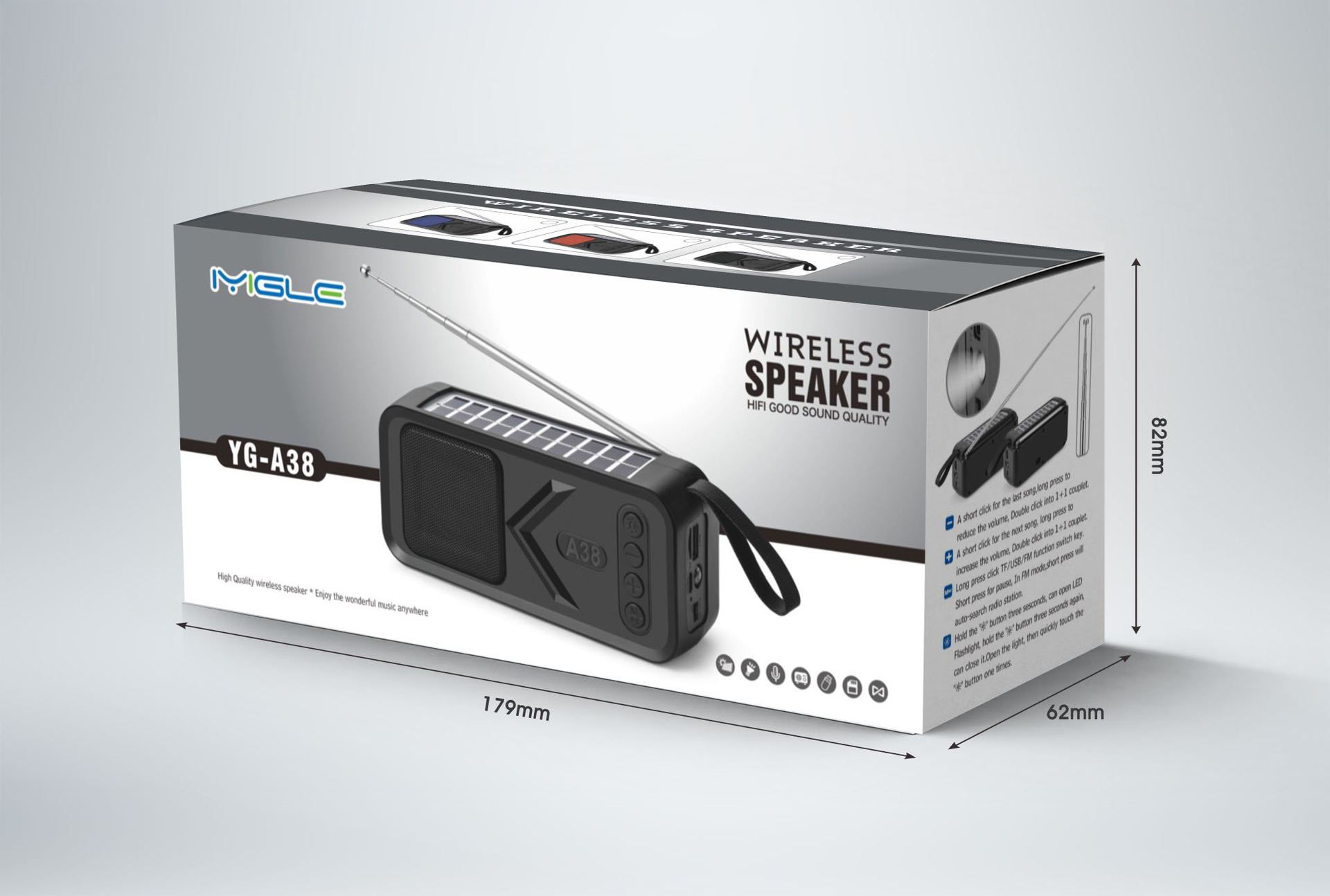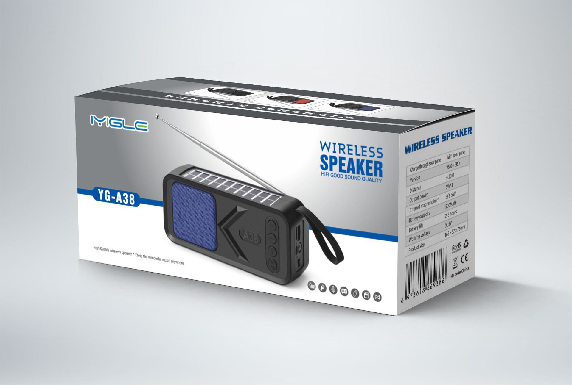 YG-A38新款热卖蓝牙音箱 无线太阳能板充电蓝牙音响 非洲FM收音机