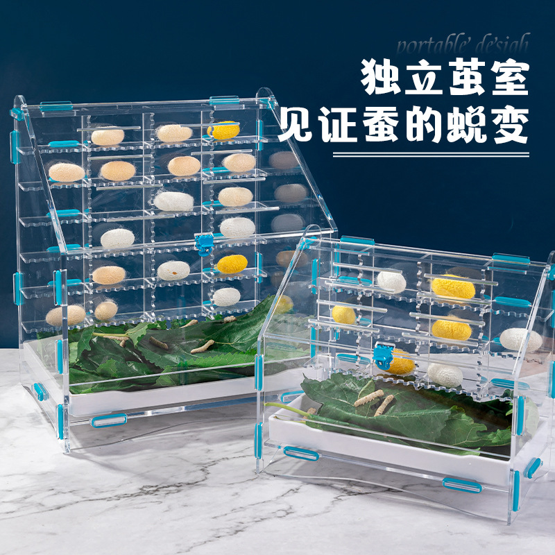 蚕宝宝别墅养蚕盒子全透明亚克力新款科普蚕套餐桑叶结茧饲养箱