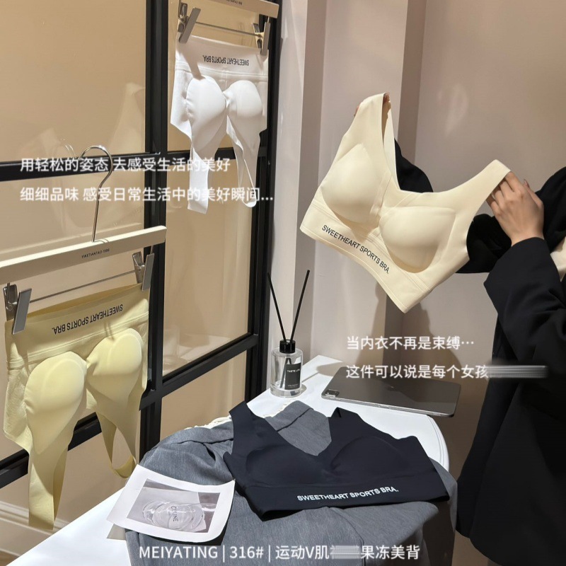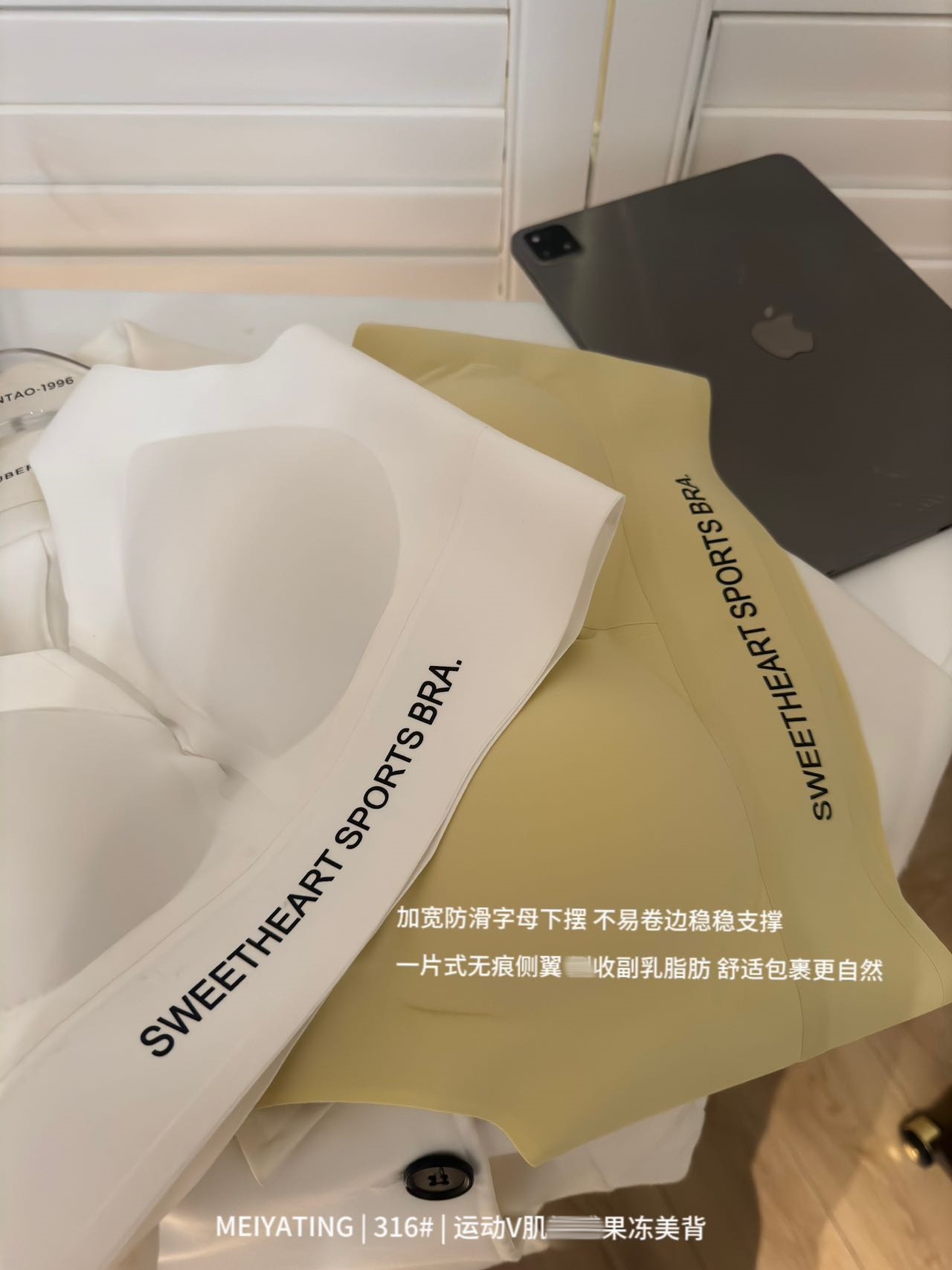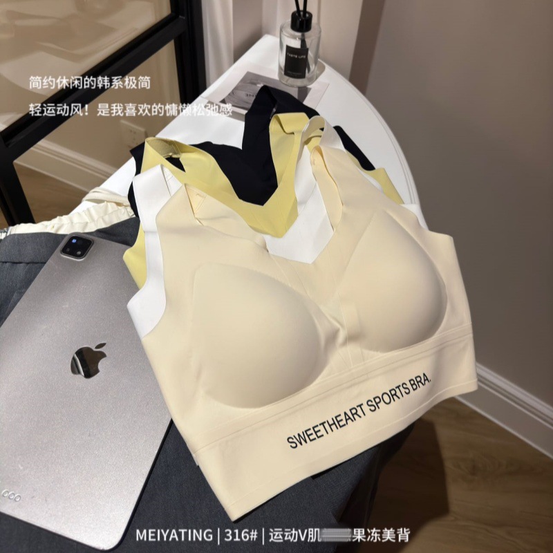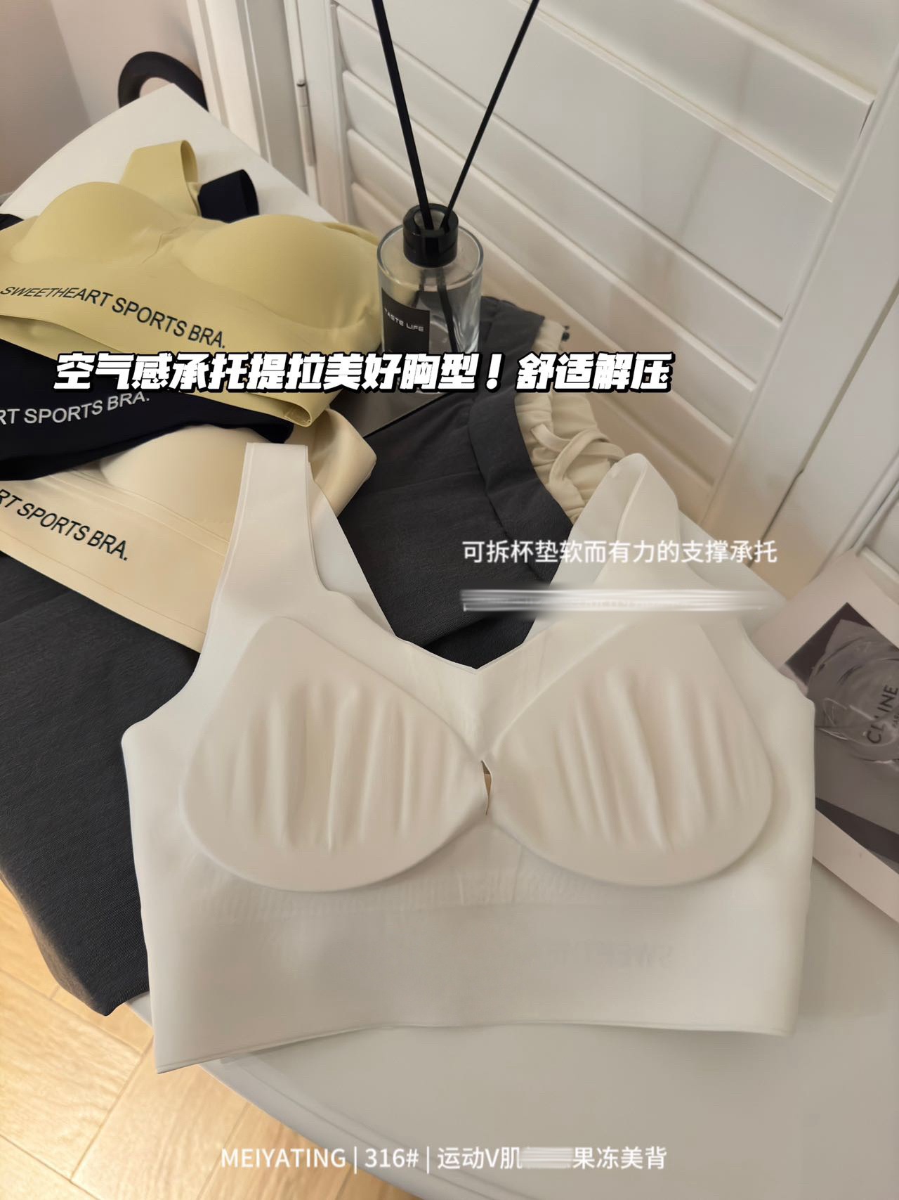 316#运动V肌果冻美背无痕冰丝舒适透气自带3D胸垫宽肩背心裹胸抹