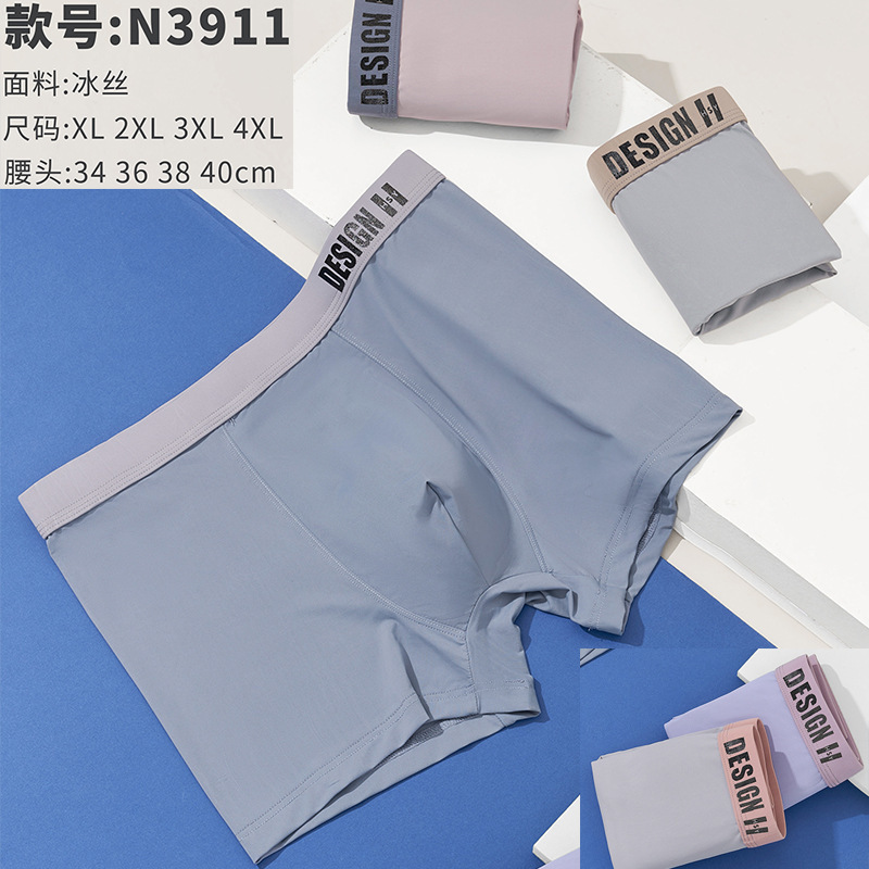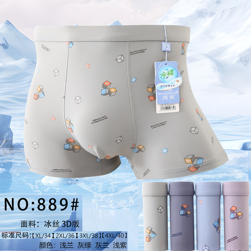 2024冰丝男士内裤3D夏季彩纱男士冰丝锦纶平角内裤爽正规码