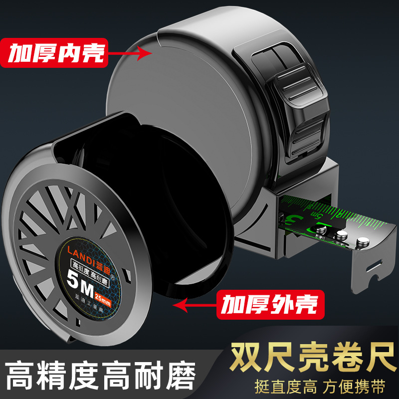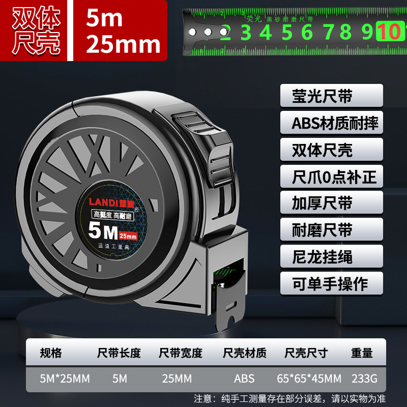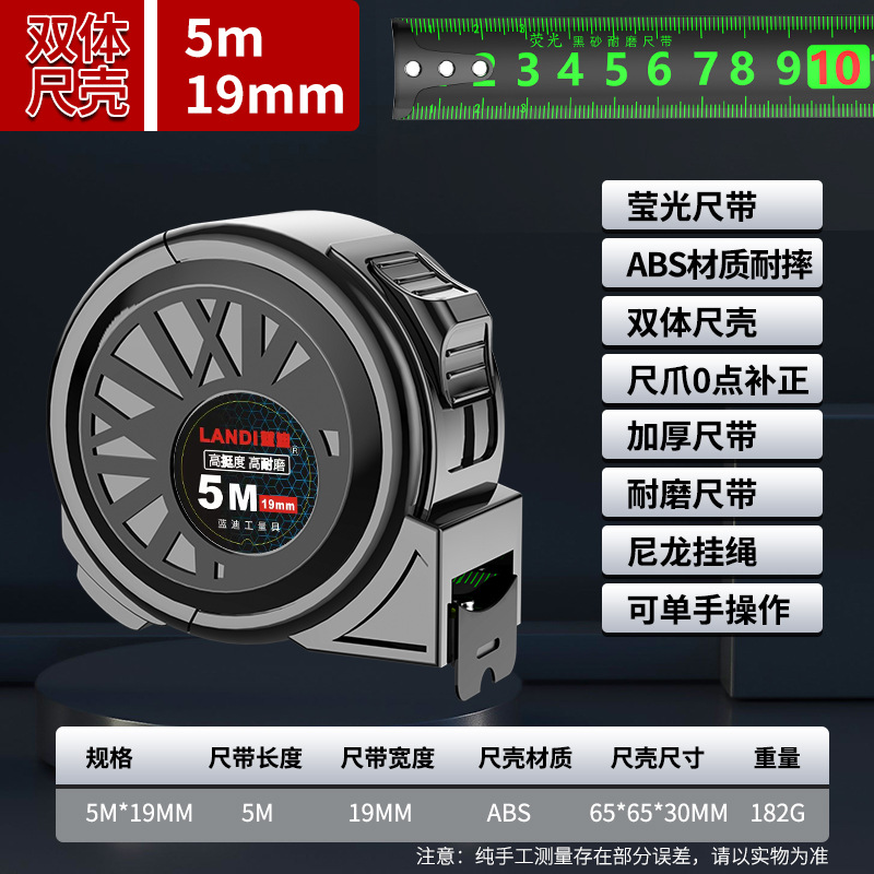源头工厂荧光尺带卷尺5米 米尺日用量具盒尺 英寸钢卷尺大量批发