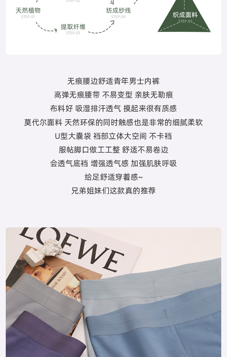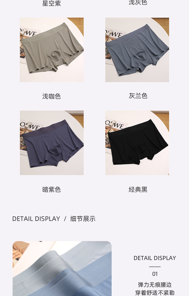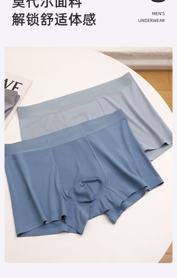 男款80支莫代尔平角男士内裤批发纯色棉轻薄款男式大码无痕裤头