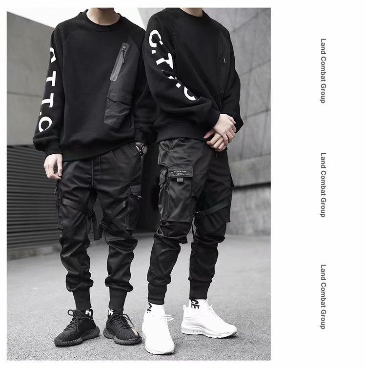 机能风潮牌工装裤男个性飘带束脚韩版潮流宽松街头嘻哈百搭哈伦裤