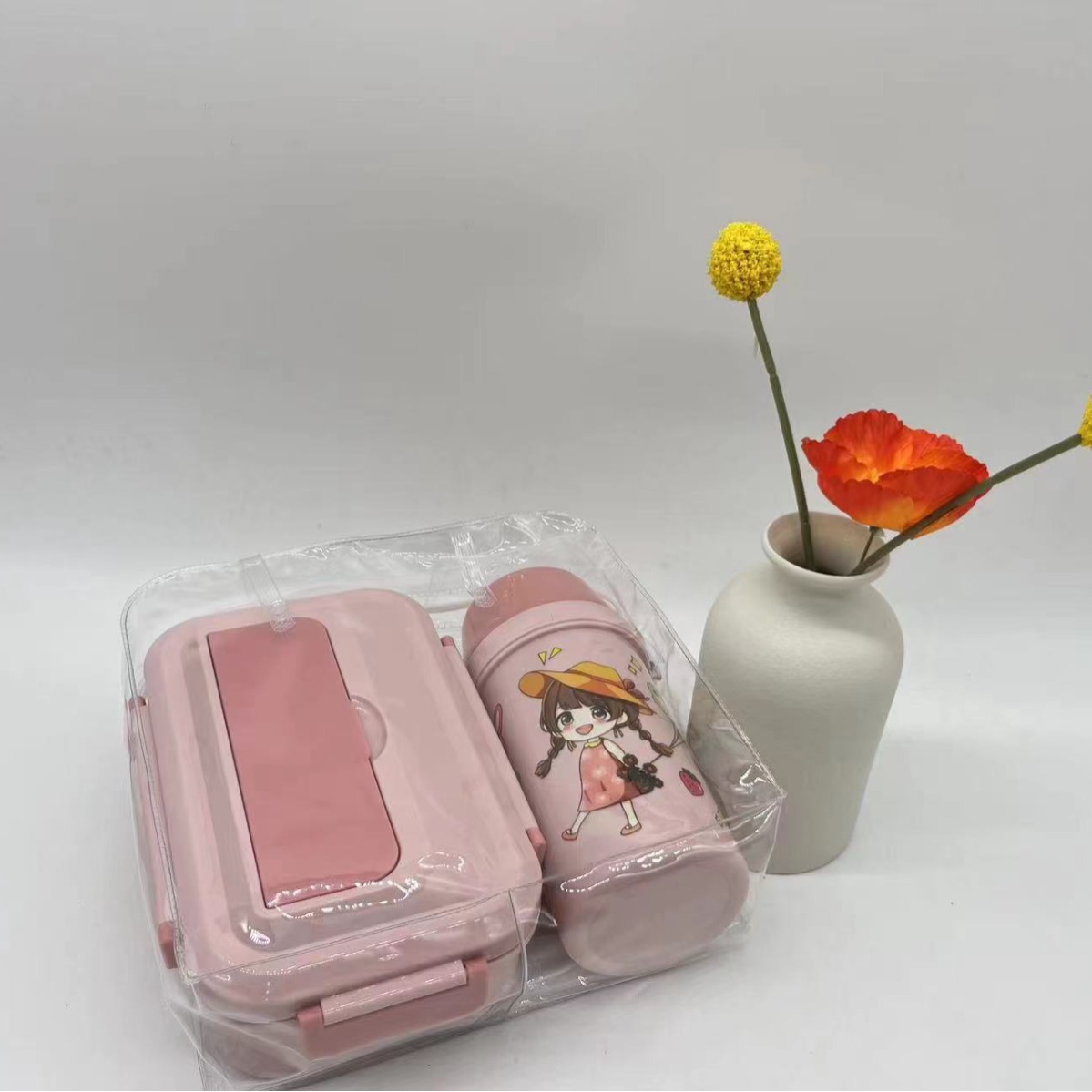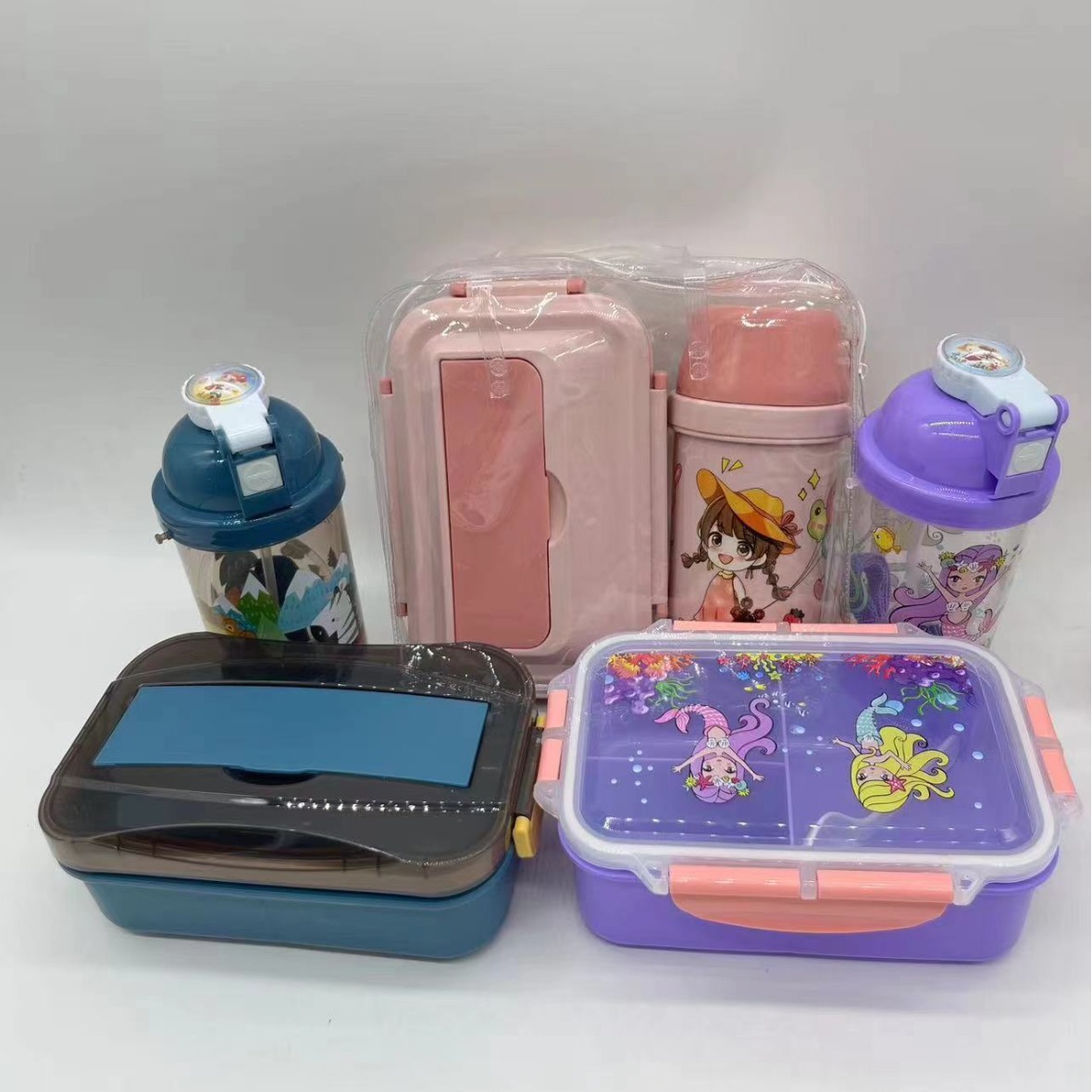 卡通饭盒水壶套装学生用可爱儿童便当盒餐盒水瓶