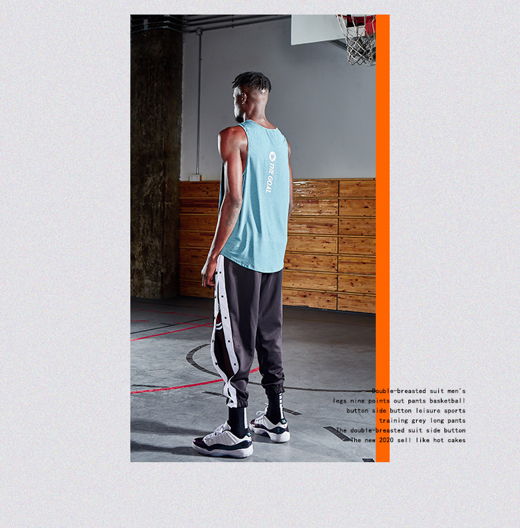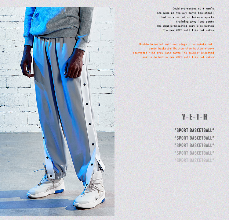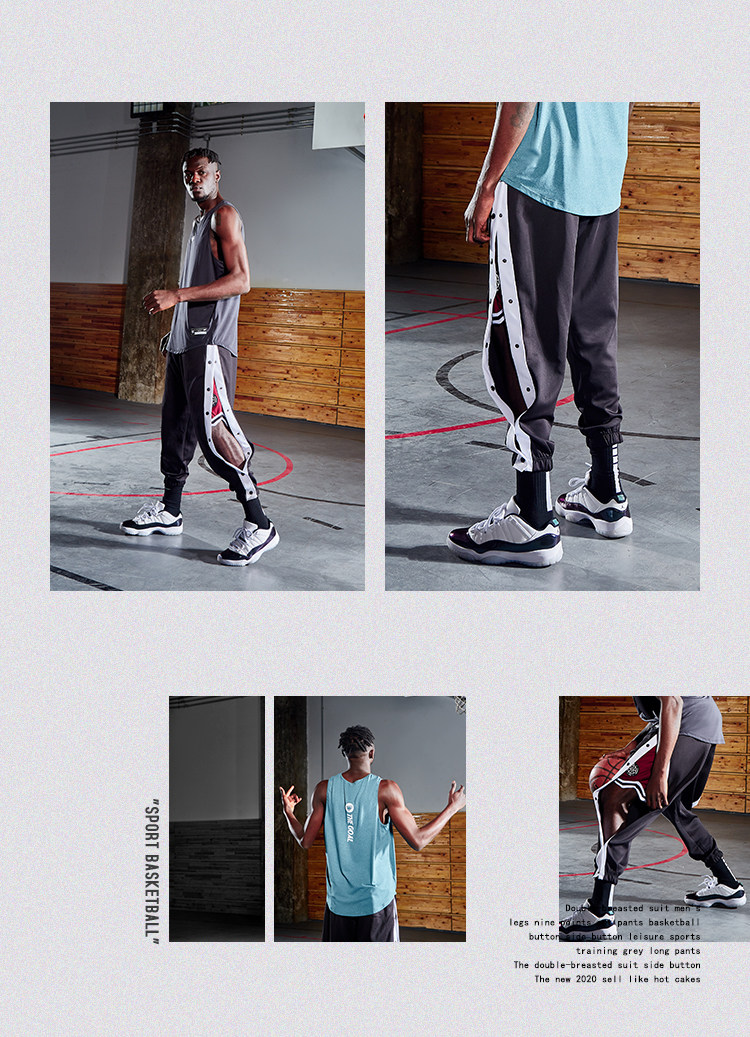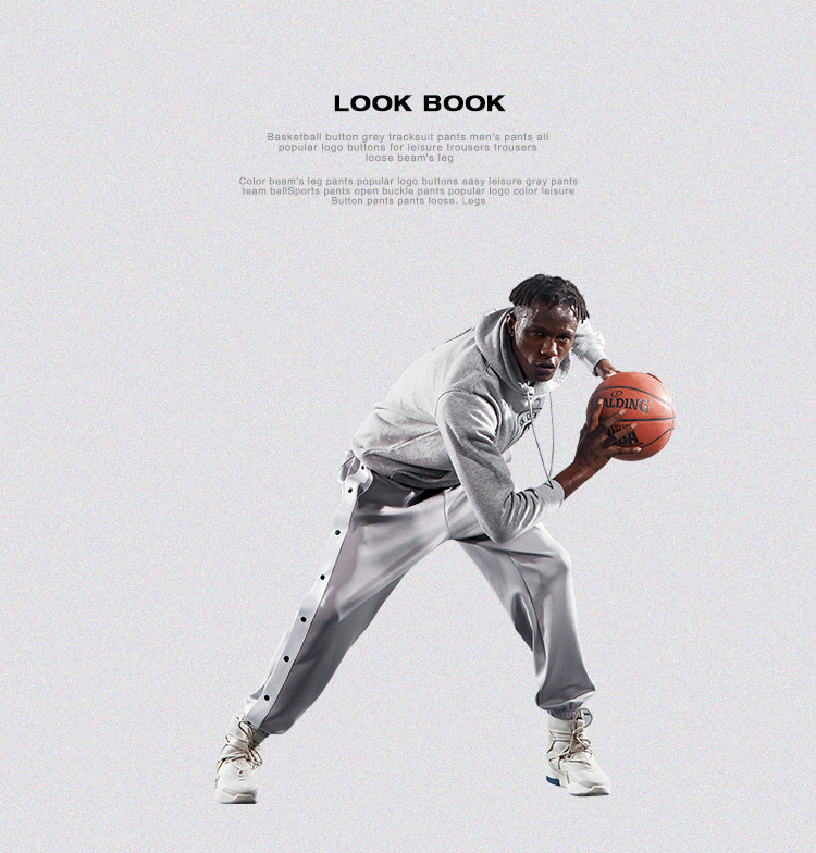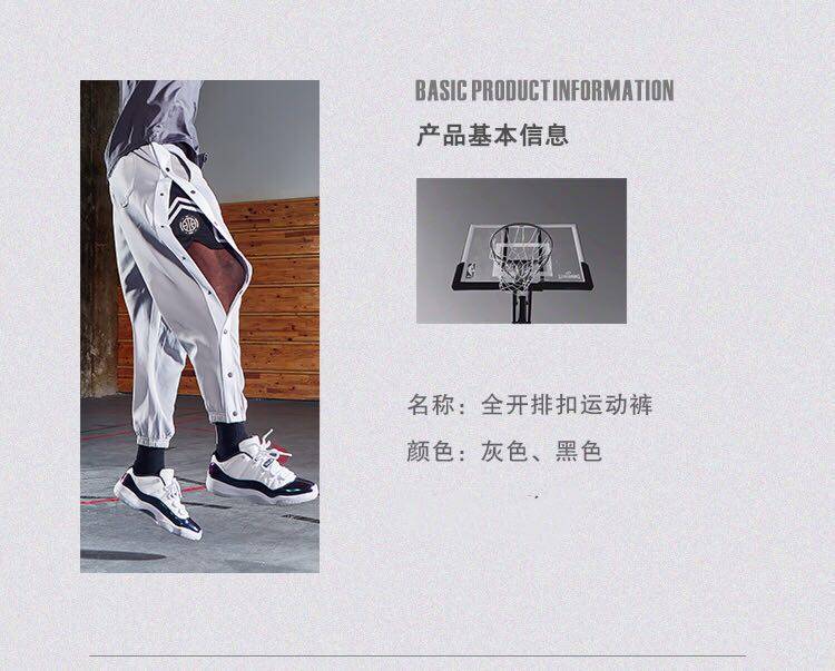 篮球裤长裤fog排扣裤宽松秒脱扯裤全开扣训练裤束脚潮牌运动裤男