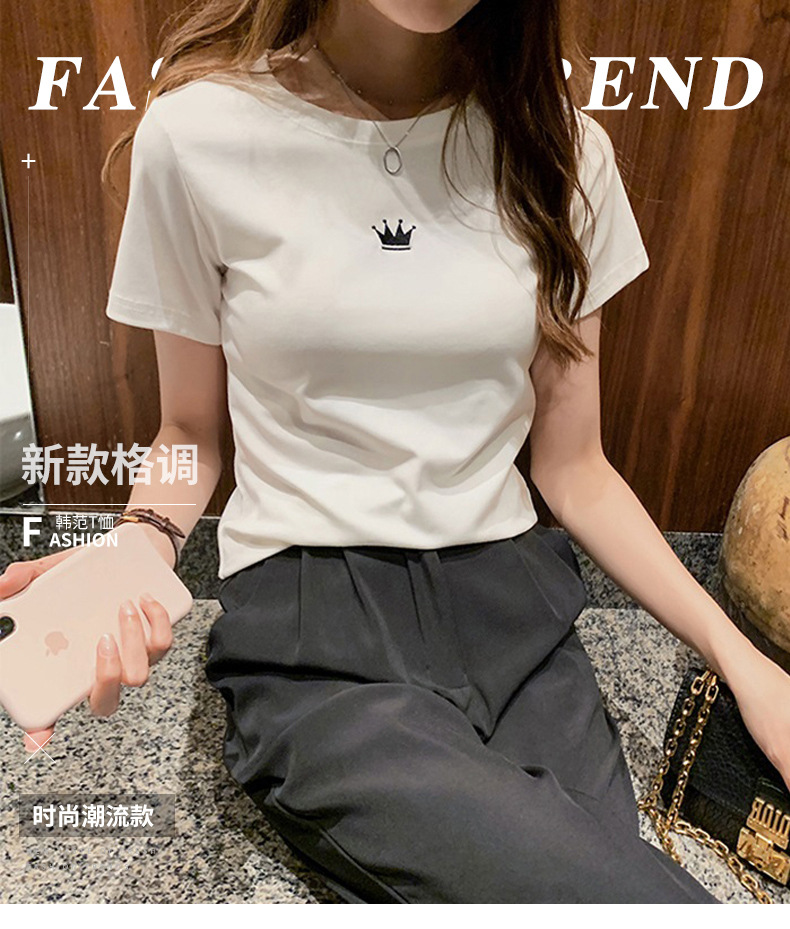 2023夏季新款修身刺绣圆领短袖T恤女装学生女士打底上衣