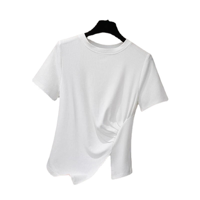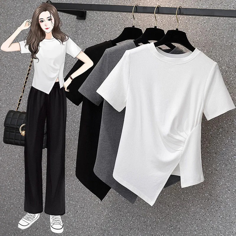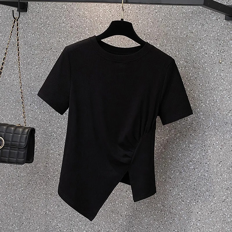 2023新款宽松显瘦色大码女装短袖上衣批发不规则设计感T恤女夏