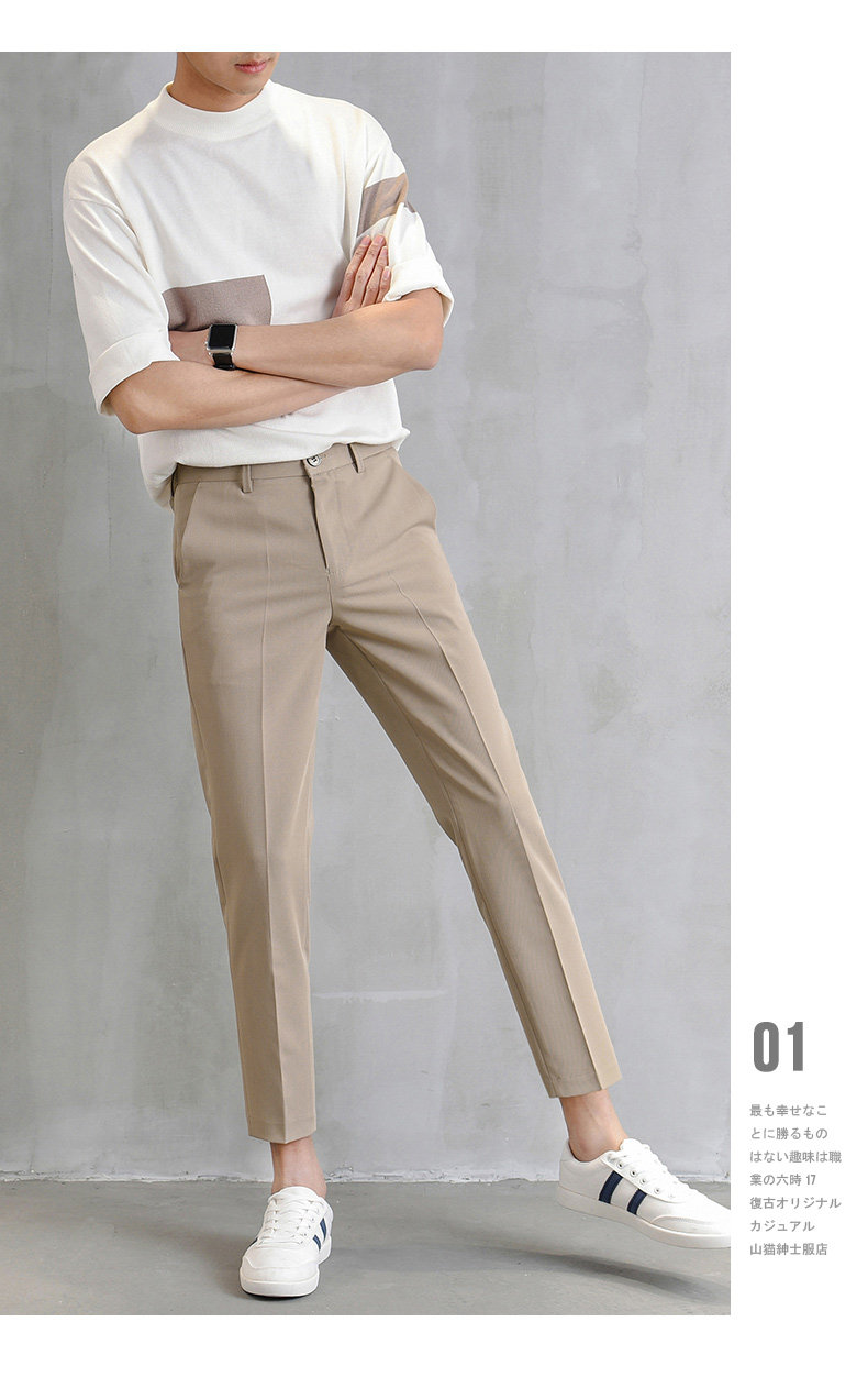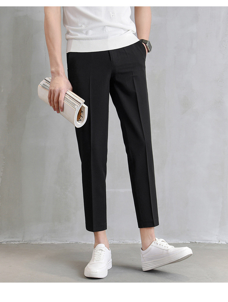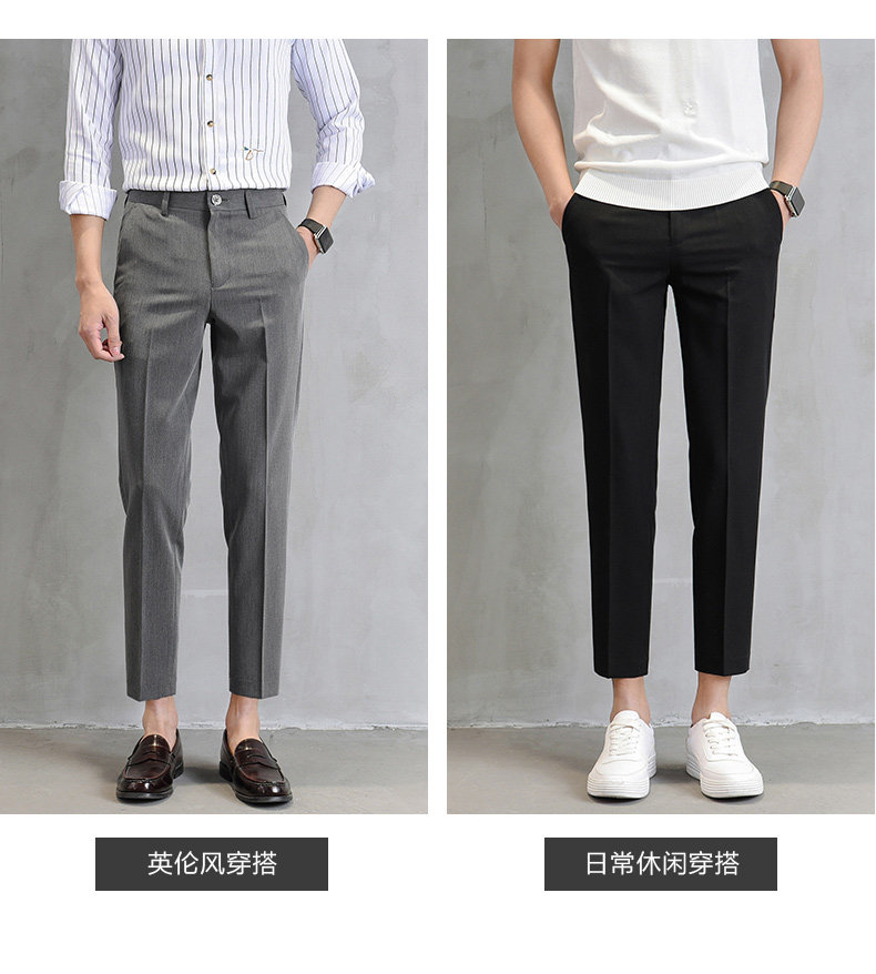 欧洲站小西裤男九分裤直筒修身小脚休闲韩版休闲坠感男士西装裤子