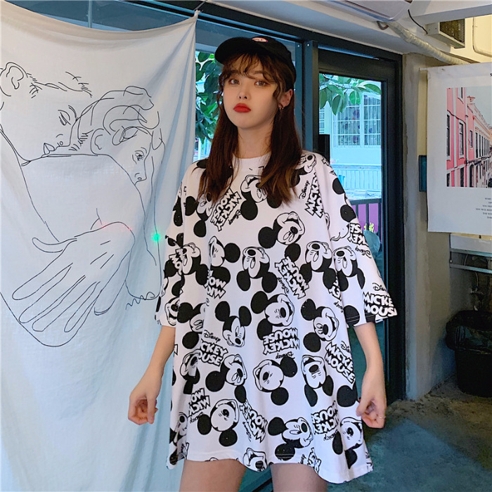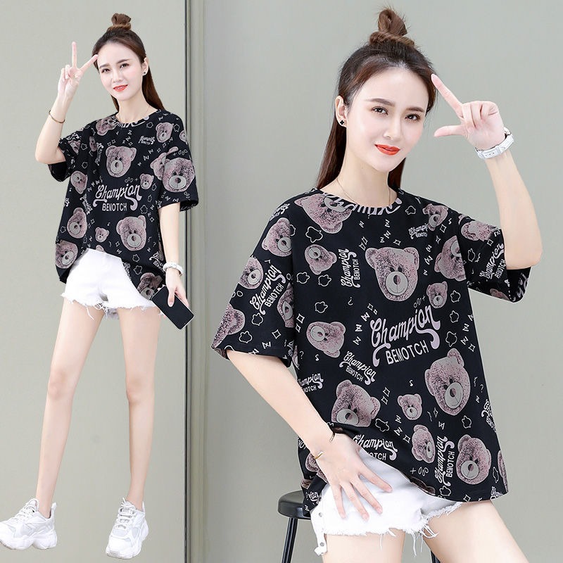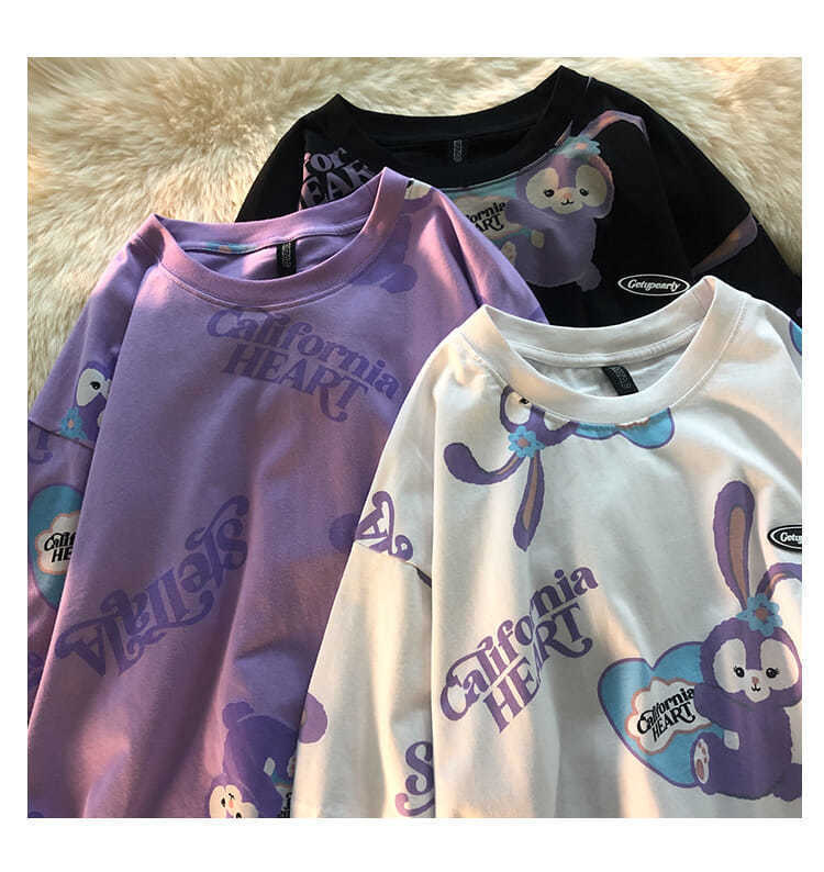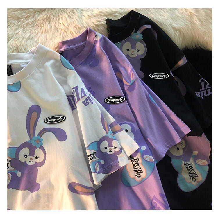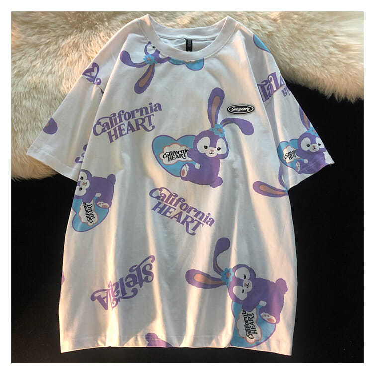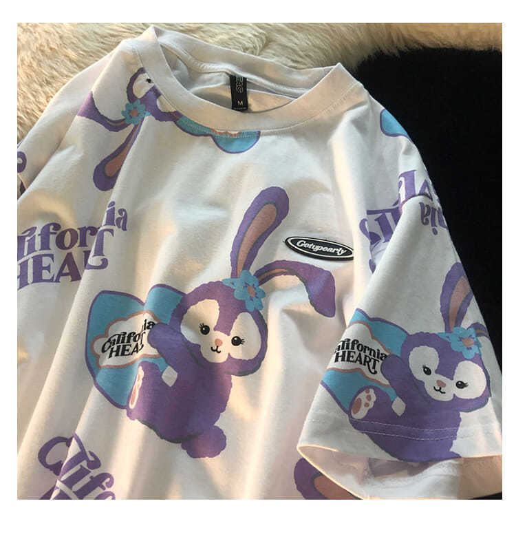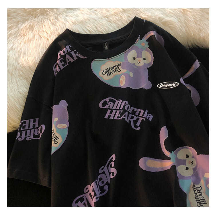 ins满印兔子2024短袖T恤女夏韩版潮原宿BF风学生宽松闺蜜装上衣服