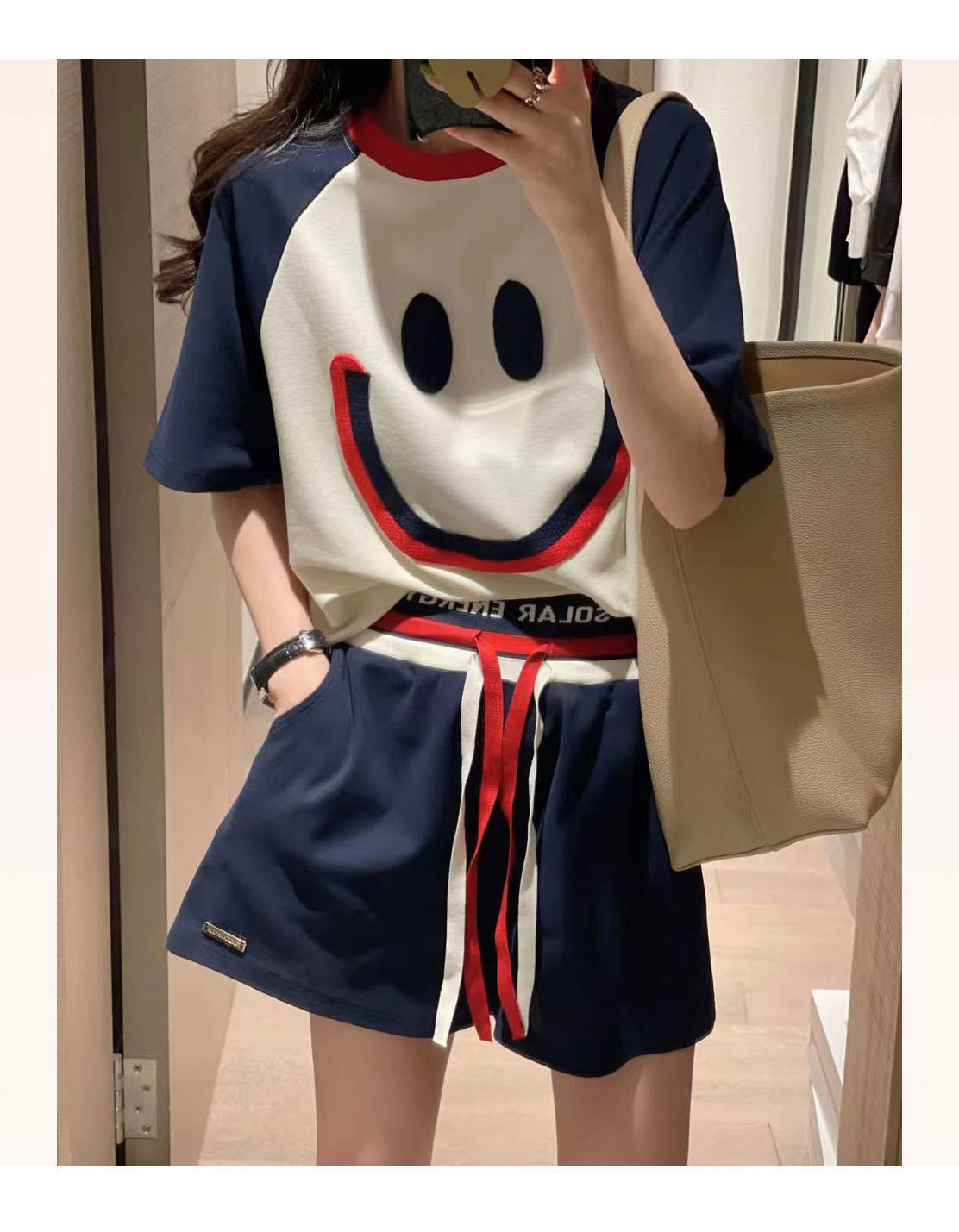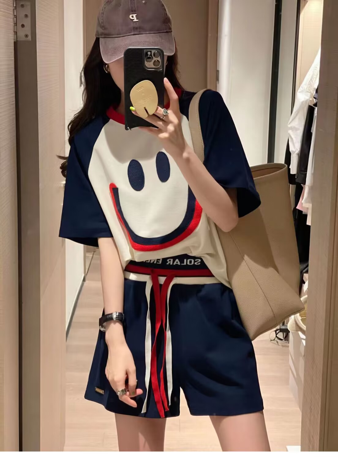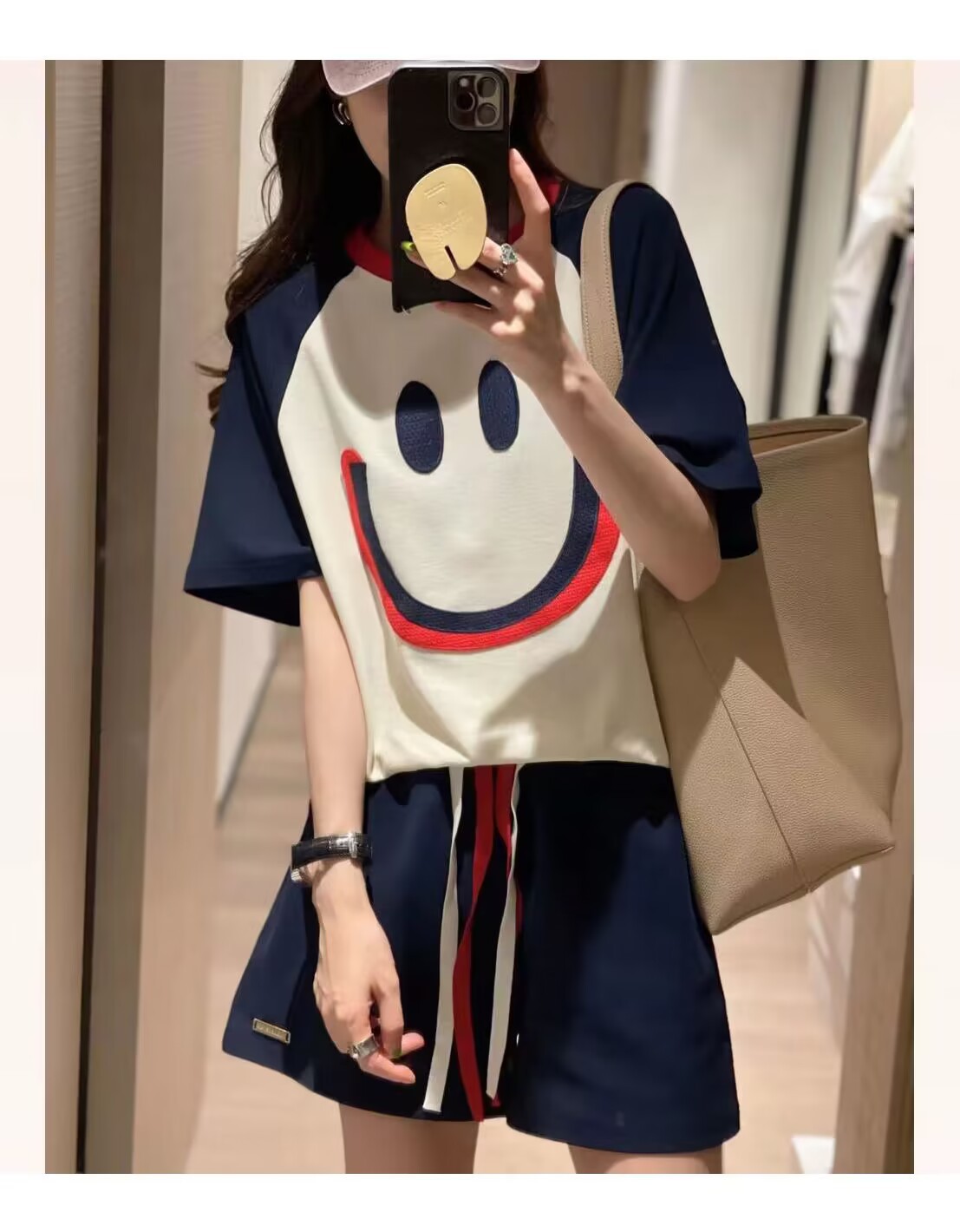 200斤大码笑脸刺绣运动套装女2024夏新款宽松休闲短袖短裤两件套