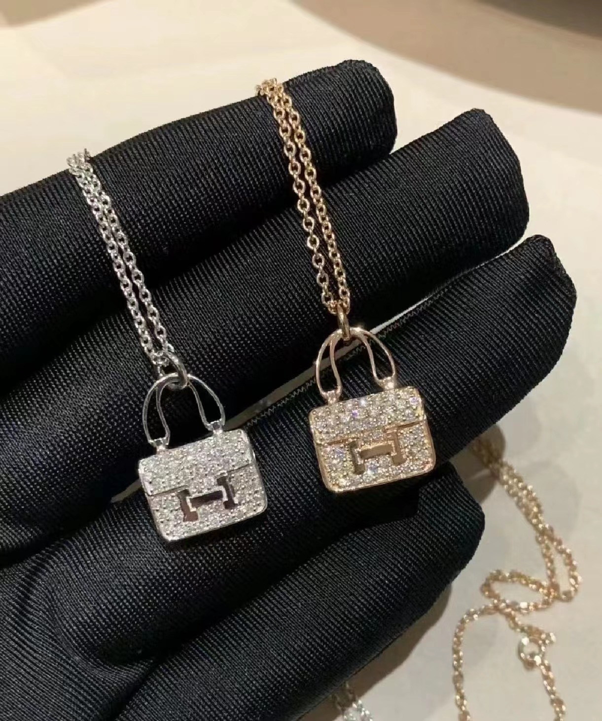 s925纯银高版本新款H康康包包项链轻奢小众高级感18k玫瑰金锁骨链