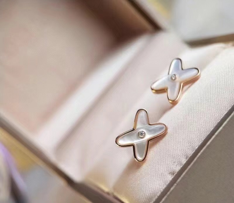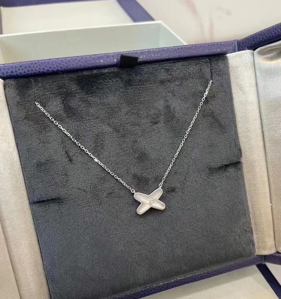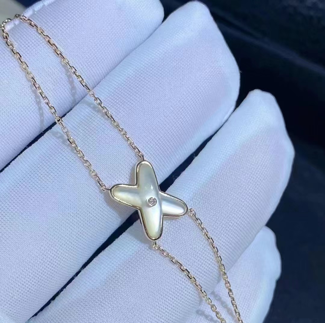 高版本尚美交叉白贝母项链女18K玫瑰金手链耳钉抖音直播工厂直销