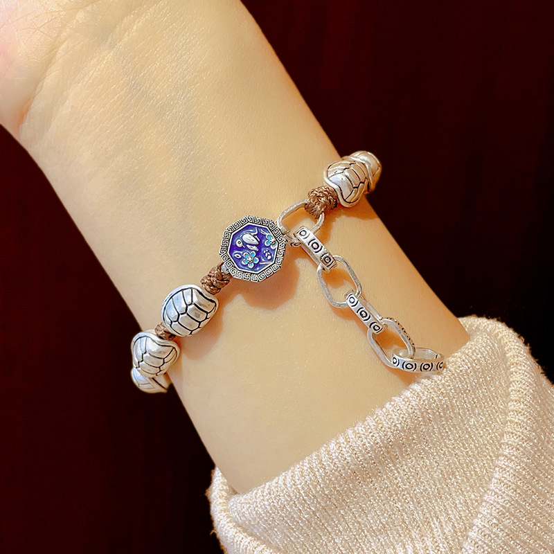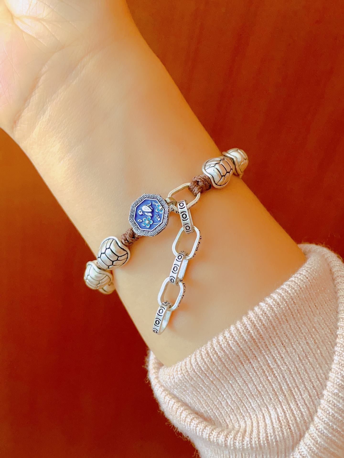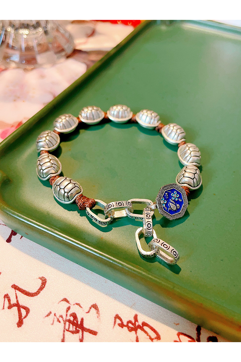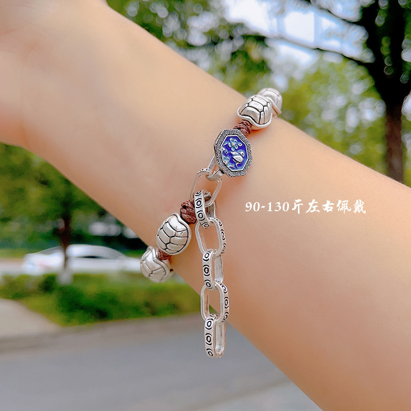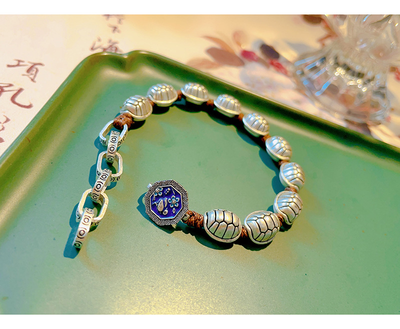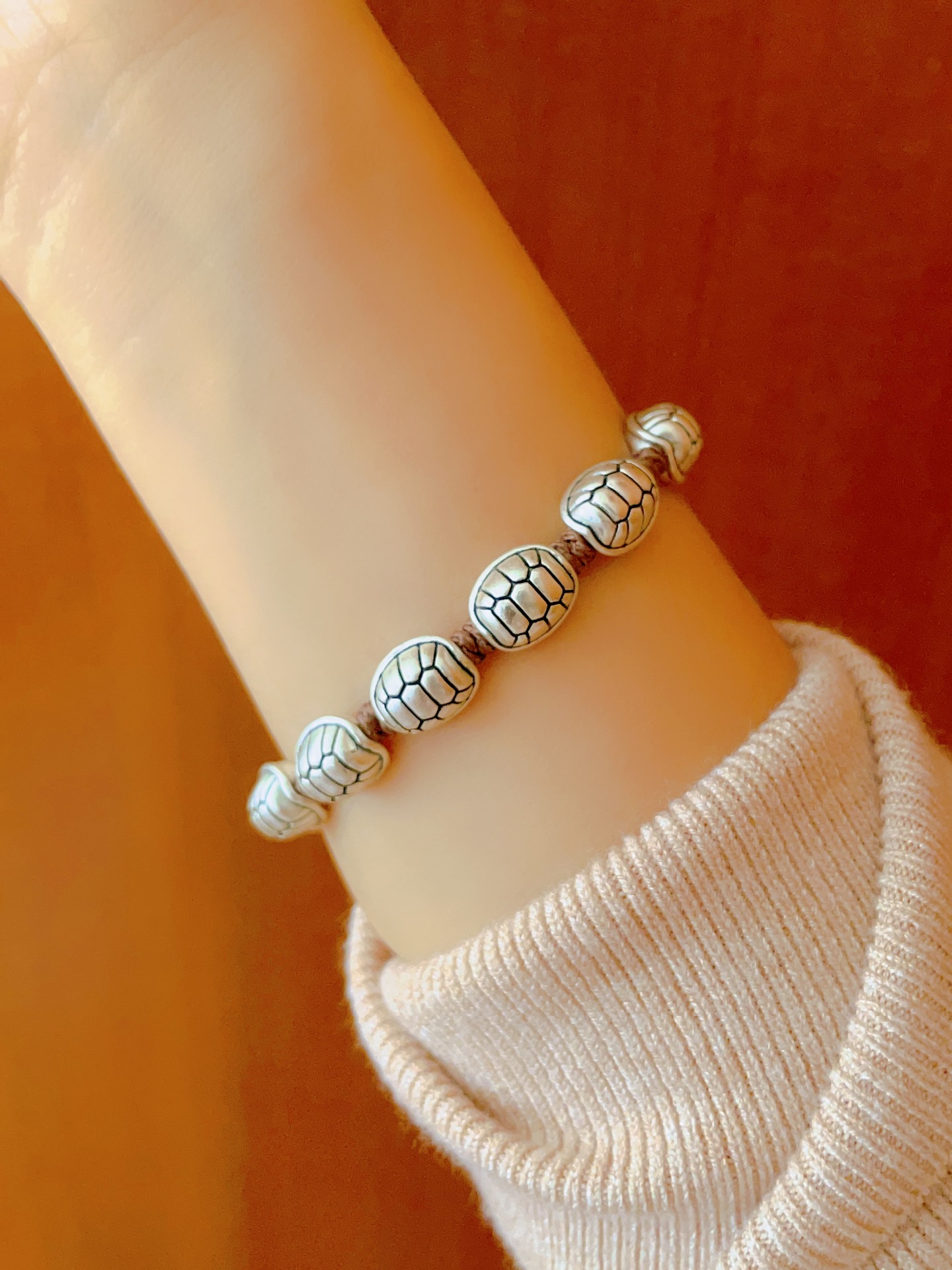 富甲一方龟壳手链男女情侣款复古民族风藏银铜钱编织手绳手饰品