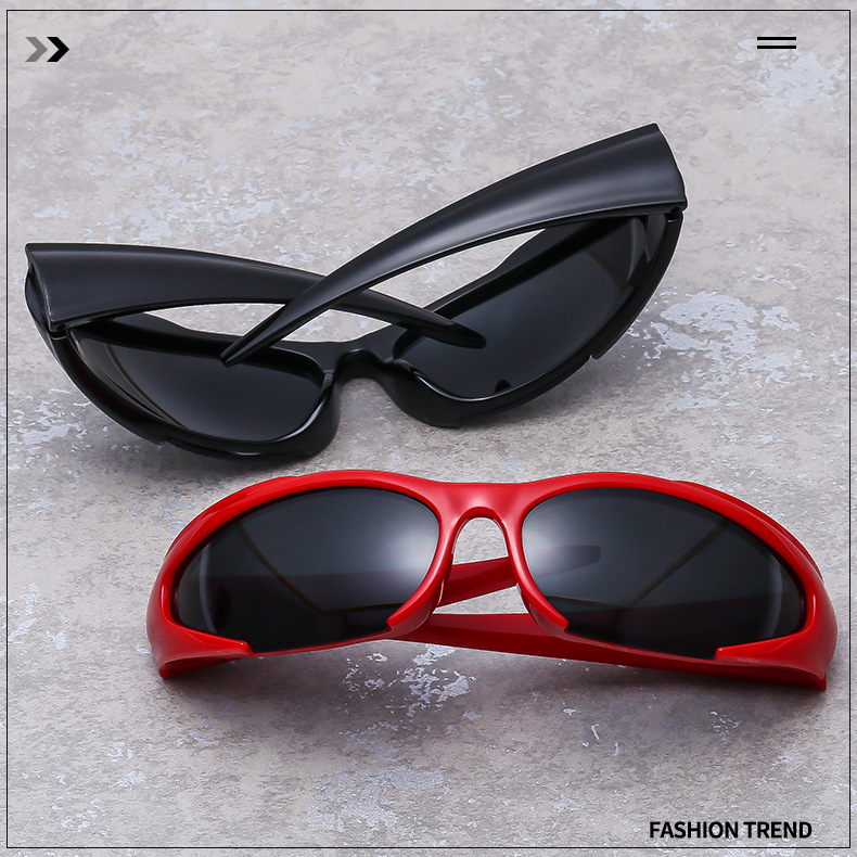 跨境新款塑料朋克夸张猫眼太阳镜男户外运动骑行眼镜时尚墨镜
