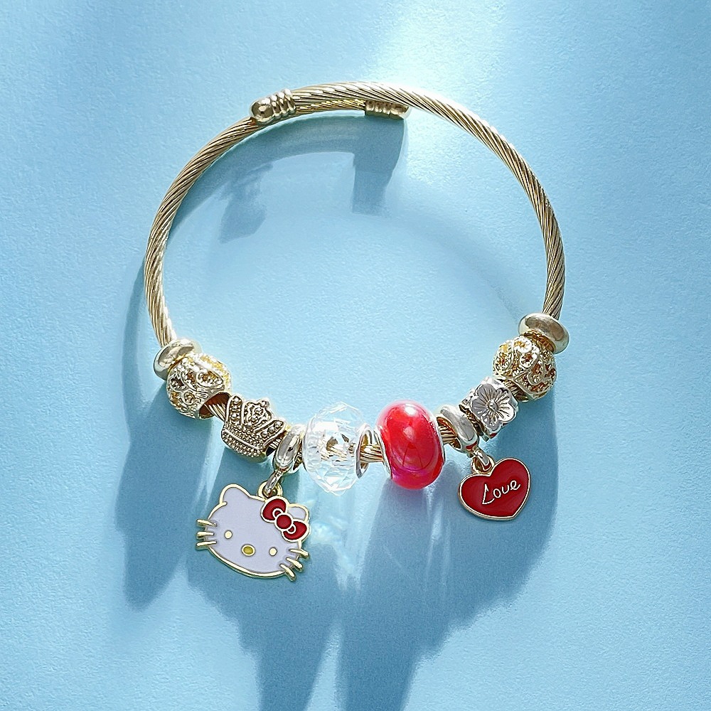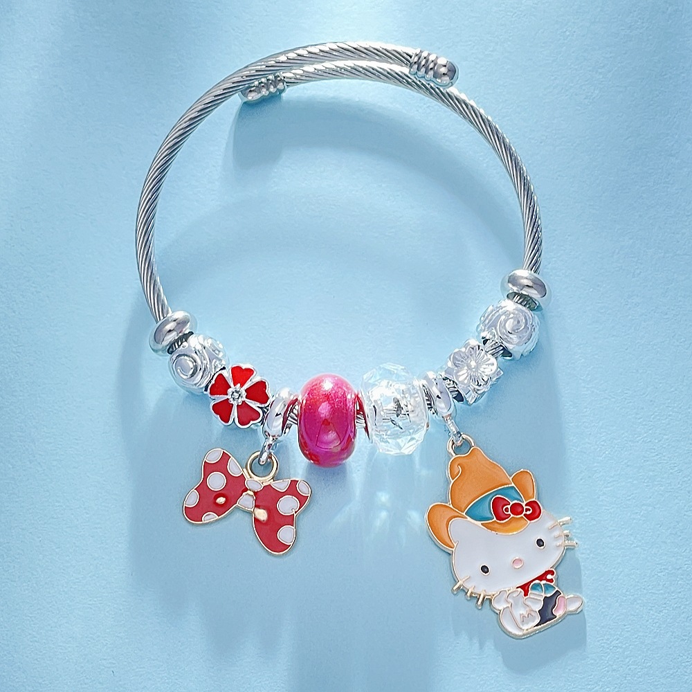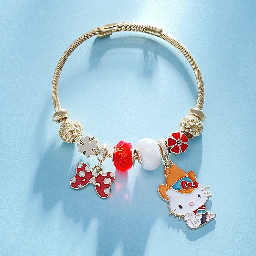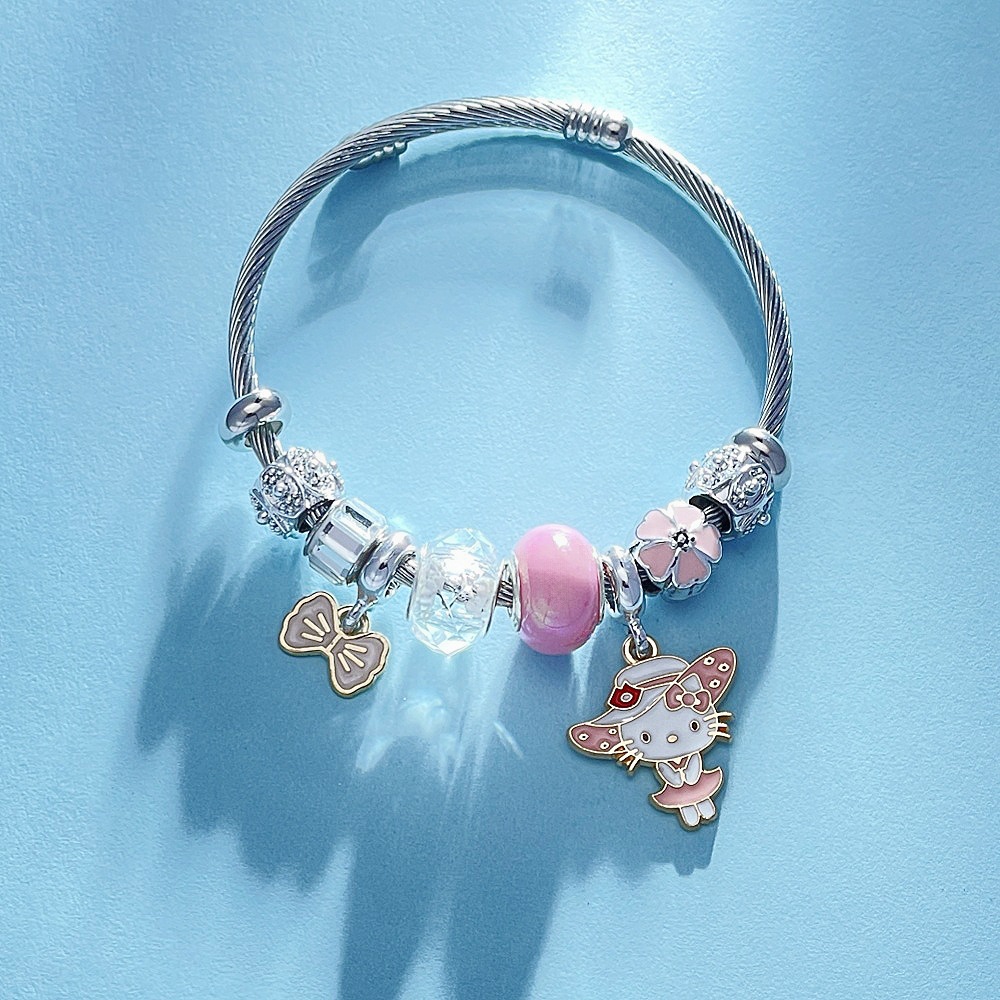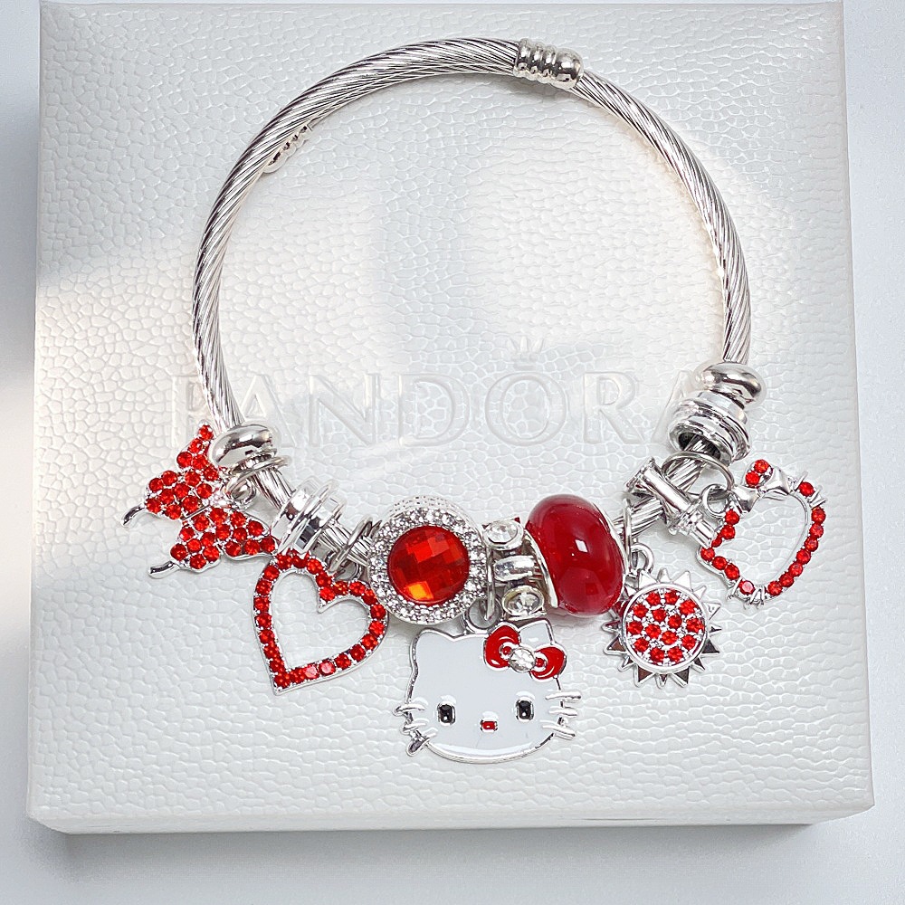粉色潘家手链KT猫手镯跨境卡通可爱手饰潘多凯蒂猫拉饰品直播首饰