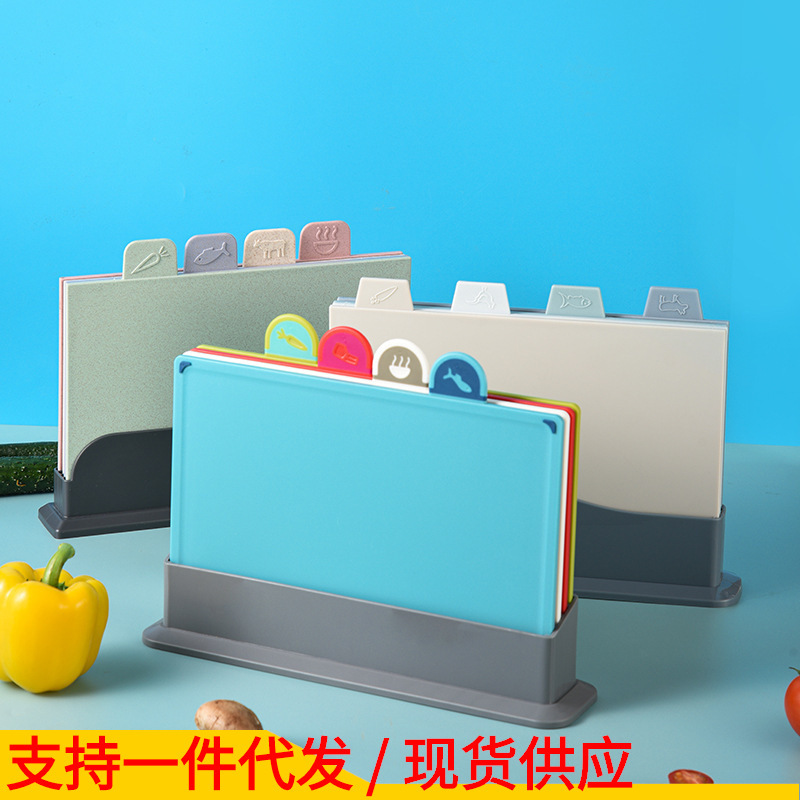 创意宝妈辅食小麦秸秆菜板四件套分类菜板 pp塑料菜板切菜板
