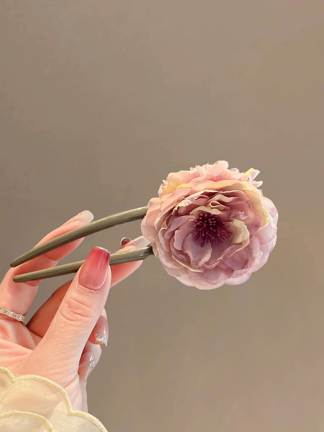 新中式玫瑰花朵发簪女2024新款丸子头头花簪花簪子发钗