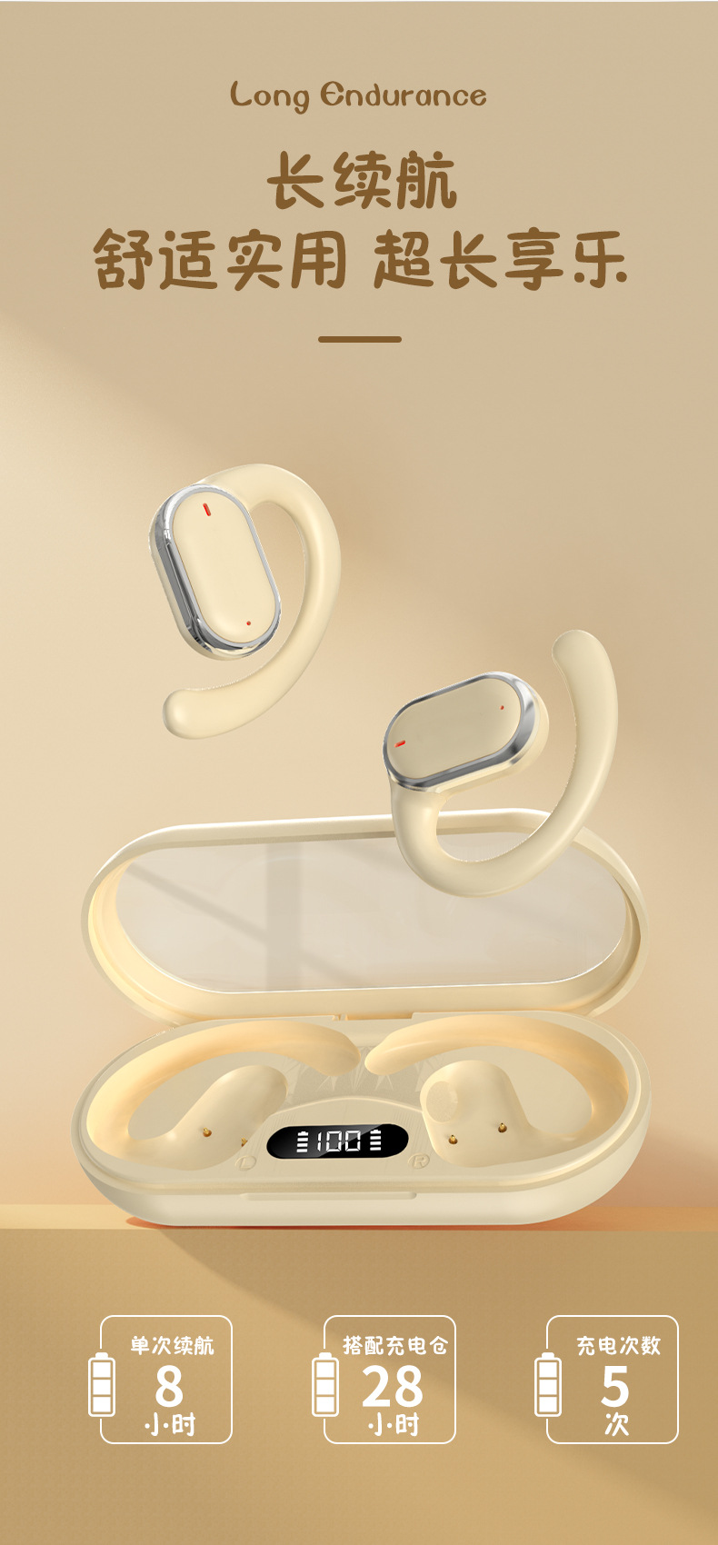 跨境爆款挂耳式蓝牙耳机X97时尚不入耳智能降噪数显电量无线耳机