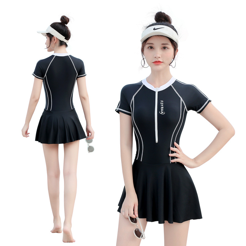 佑游泳衣女夏2023新款保守运动遮肚显瘦ins风泡温泉时尚连体泳装