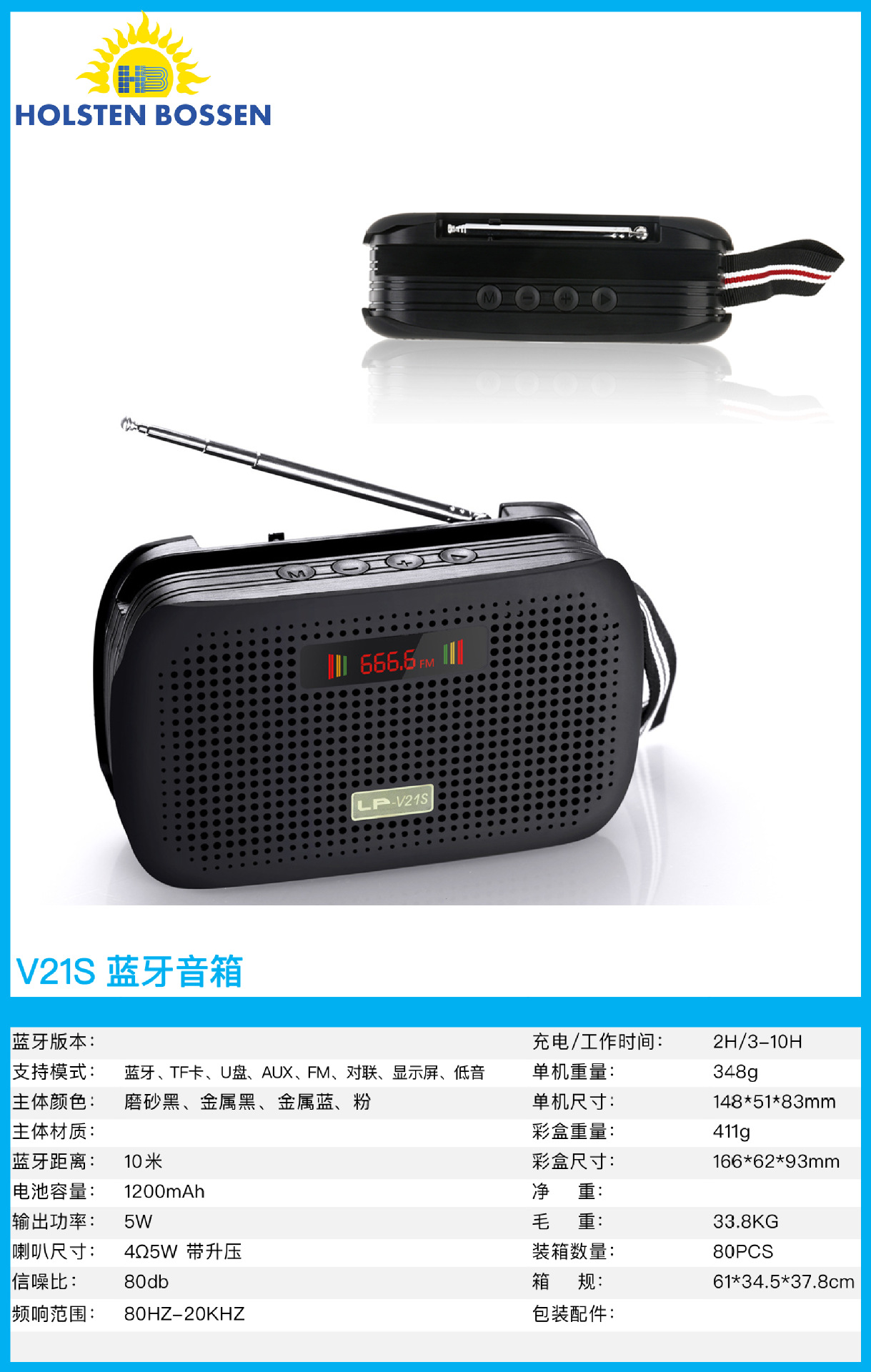 LP-V21S手提收音无线音箱户外插卡居家无线音箱收音机U盘蓝牙音响