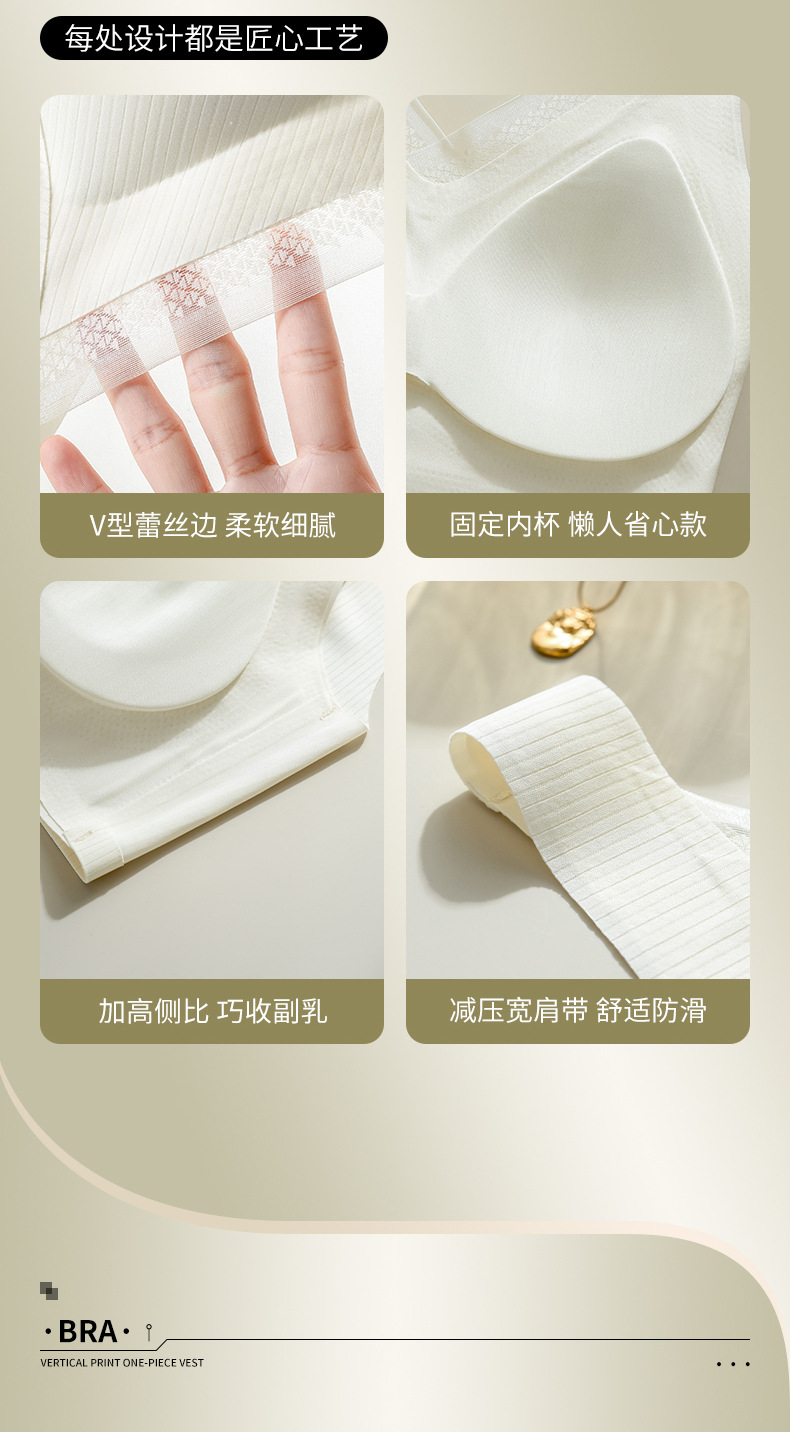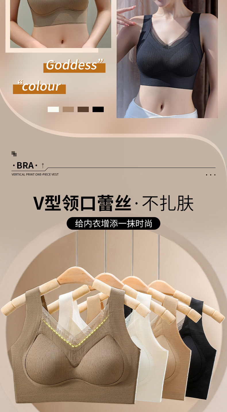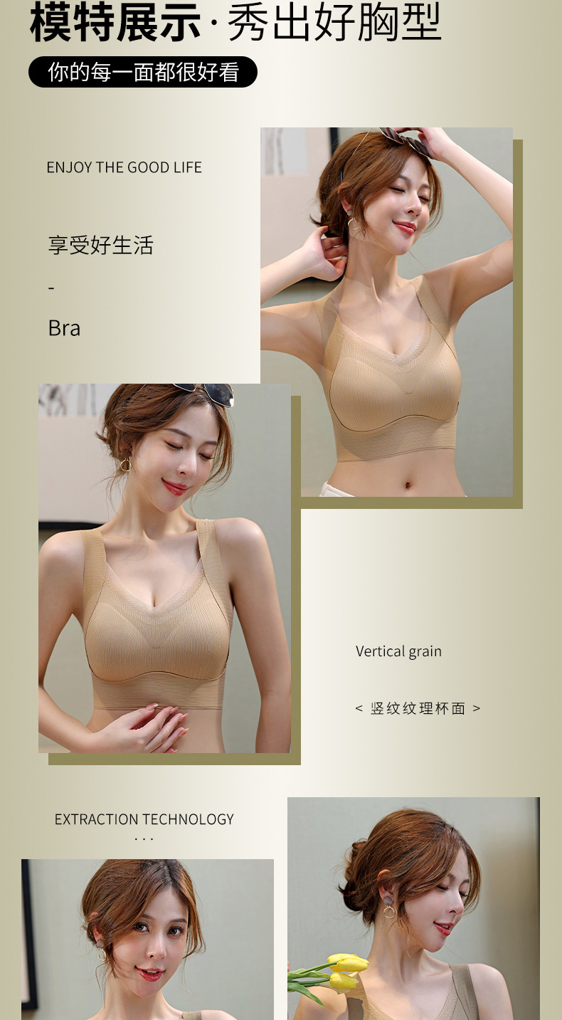 无痕裸感聚拢内衣收副乳美背固定杯胸罩舒适无钢圈背心式睡眠文胸