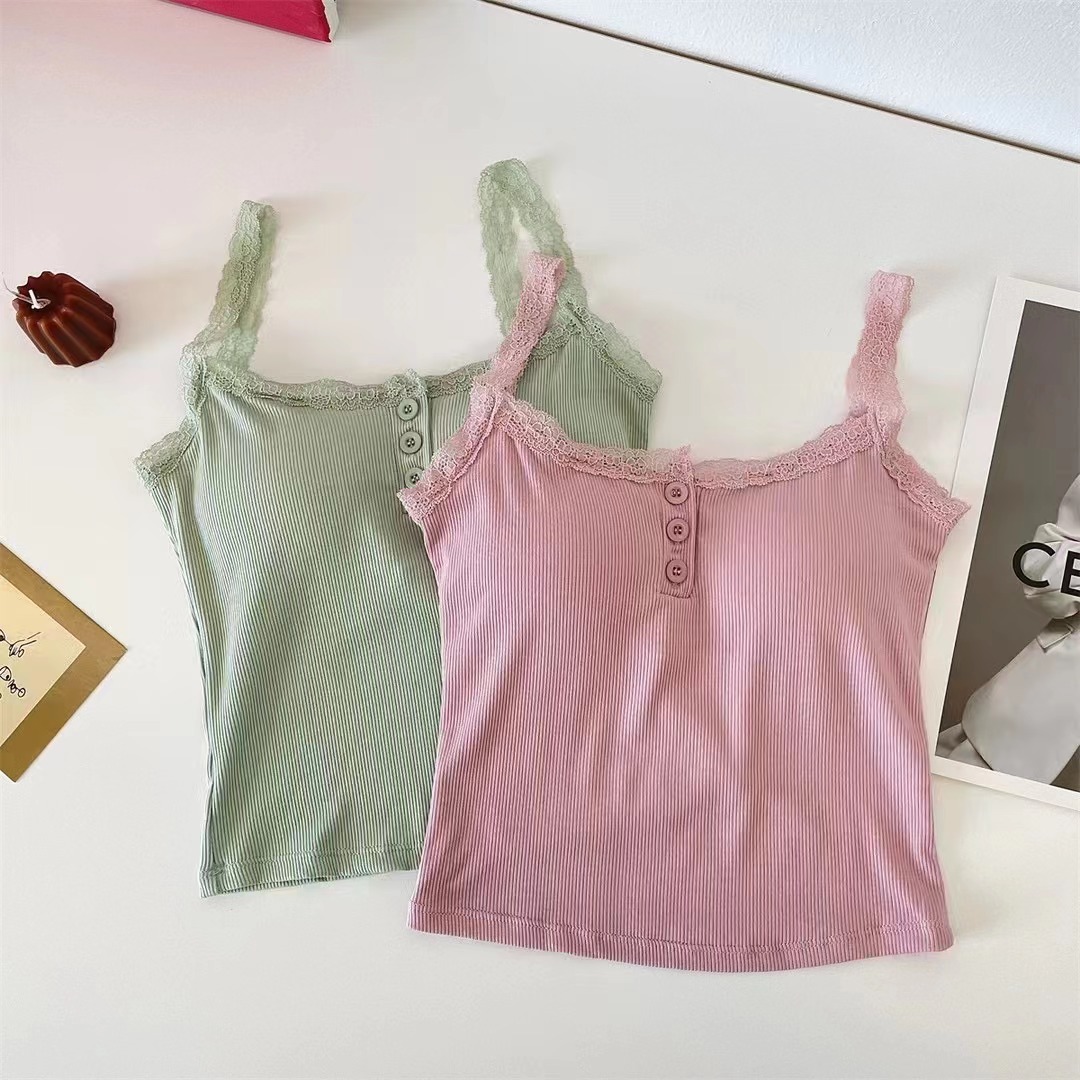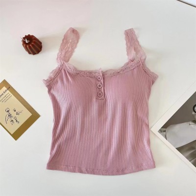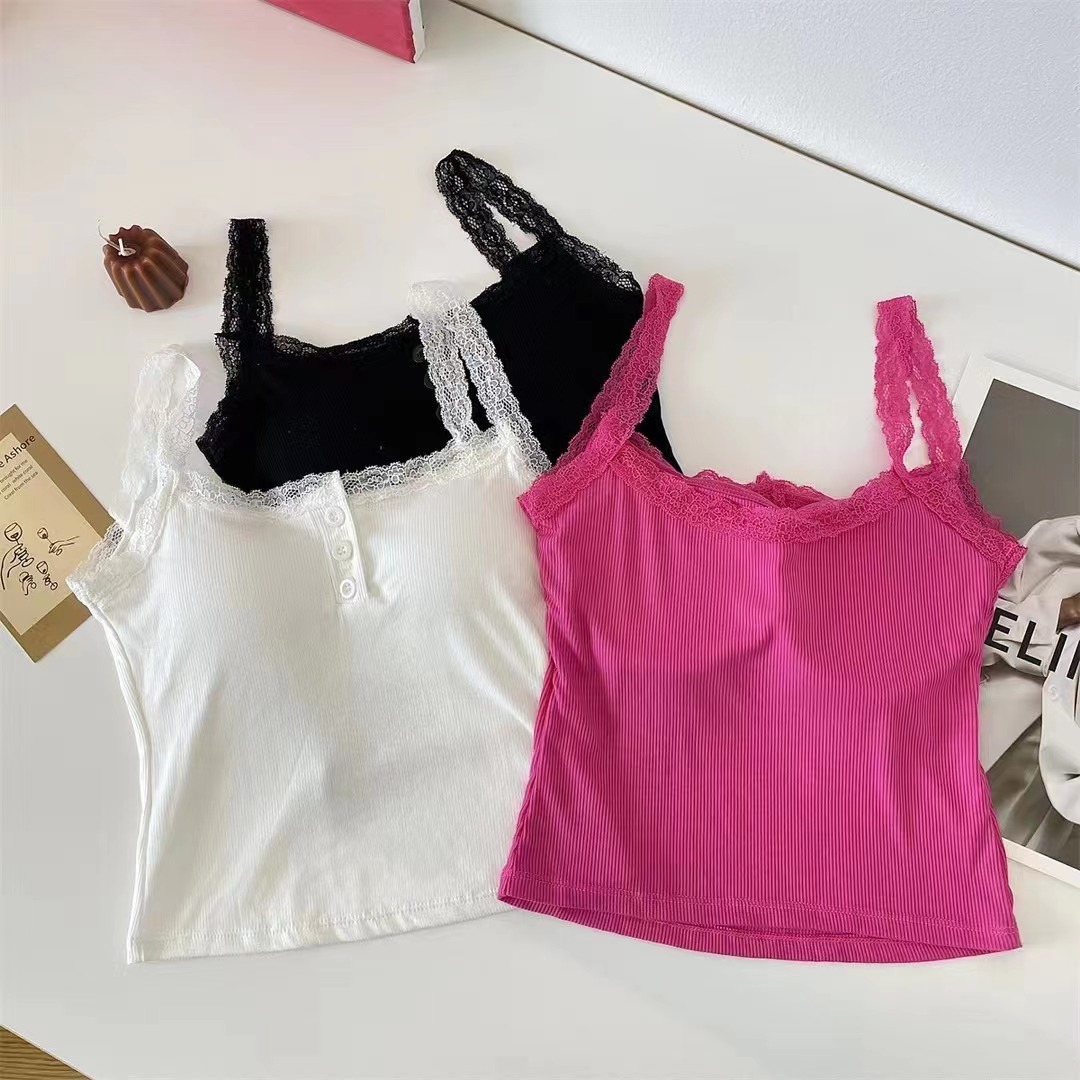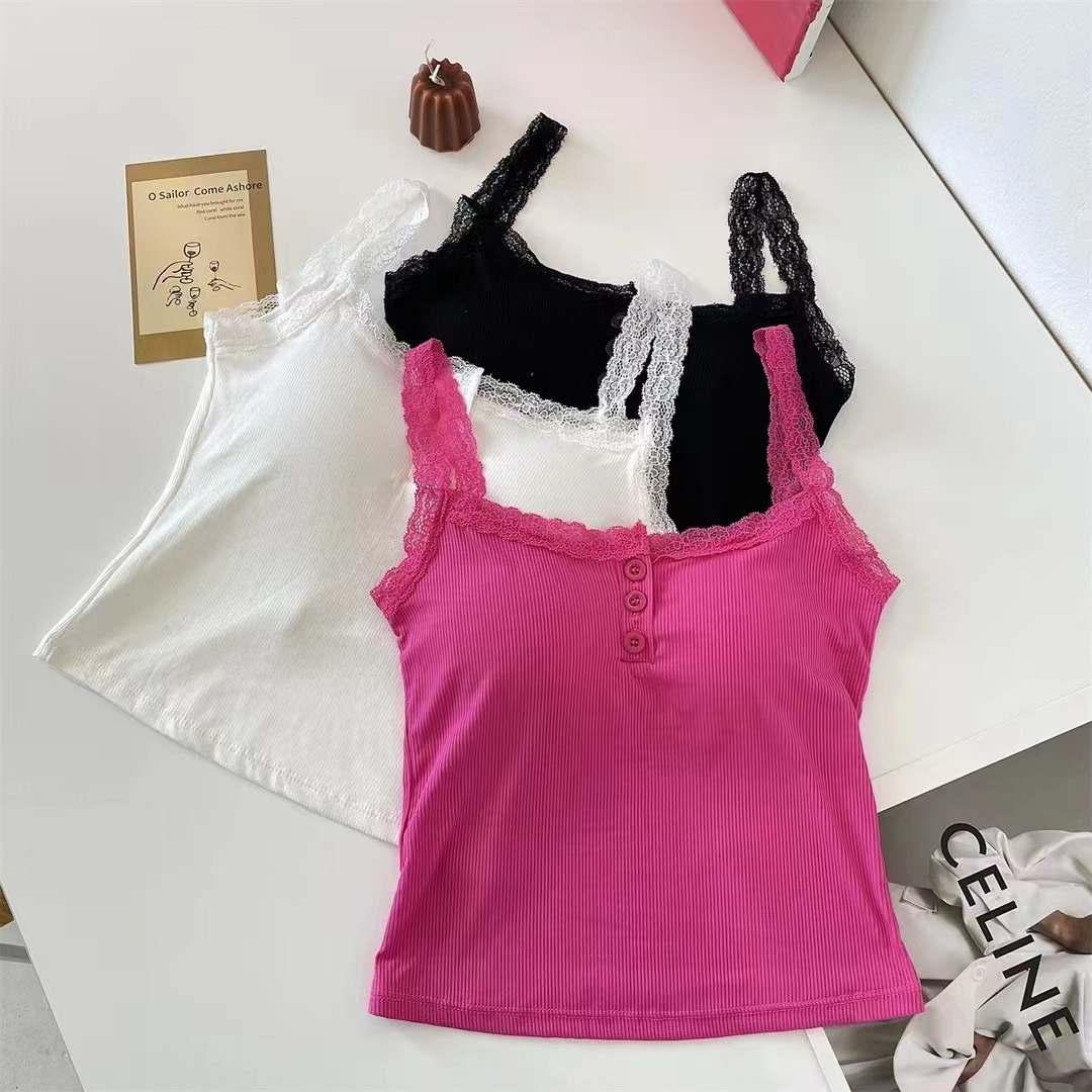 甜美蕾丝边纯色吊带背心外穿辣妹带胸垫内搭百搭打底纯欲性感内衣