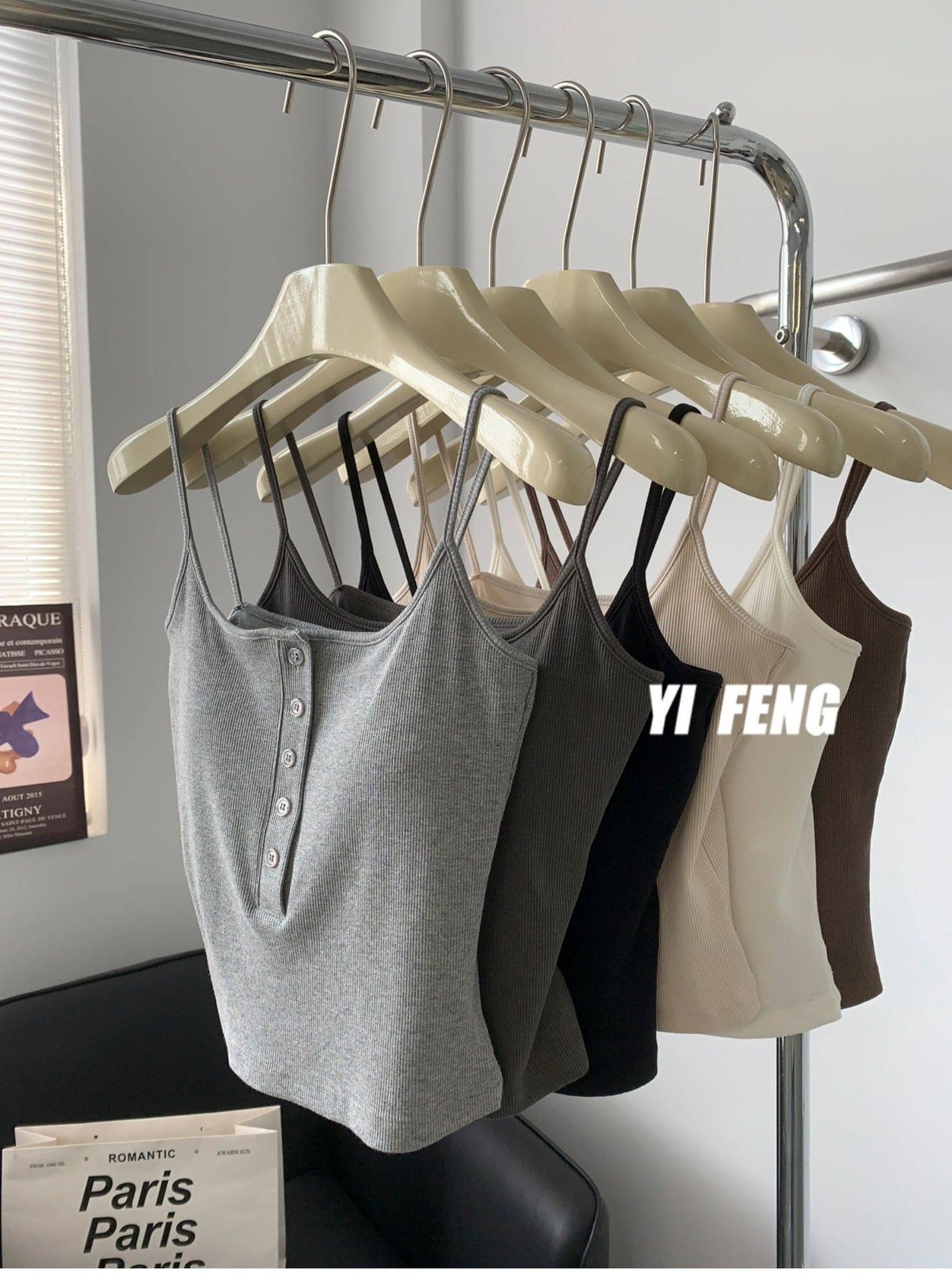 纯棉带胸垫长款小吊带女美背内搭夏季外穿打底背心百搭无袖上衣女