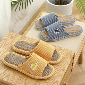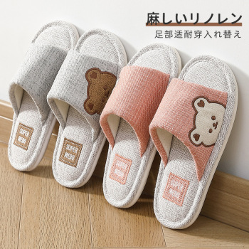 家居亚麻拖鞋女夏季可爱小熊刺绣透气防滑男士家用地板拖男夏批发